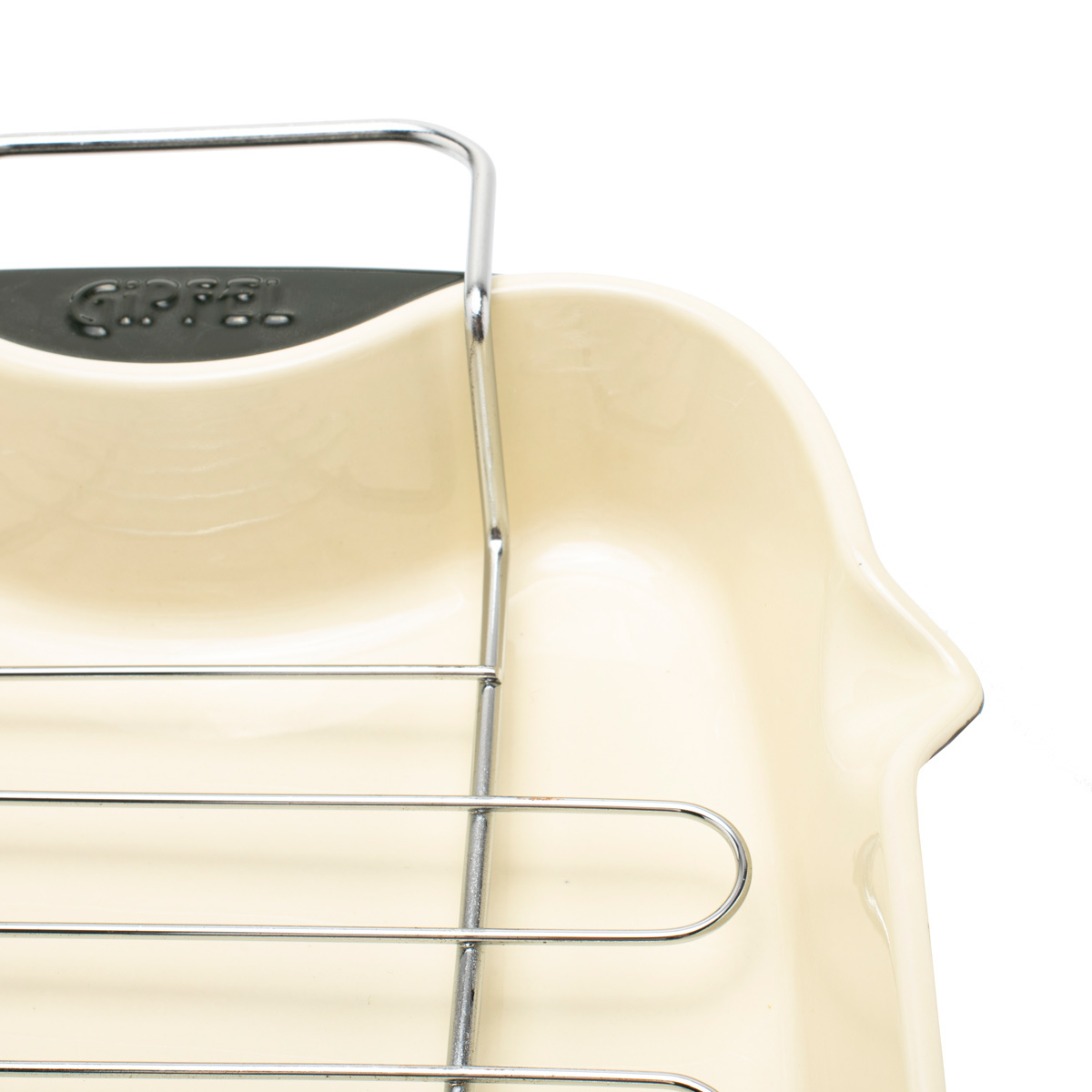 Форма изготовлена из жаропрочной керамики высокого качества, а для дополнительной защиты от царапин покрыта специальной глазурью. Компактная, но вместительная емкость с высокими бортиками подойдет для запекания мяса, картофеля, овощных блюд, пасты, пирогов. На решетке удобно готовить курицу или рыбу, позволяя соку и лишнему жиру стекать вниз.