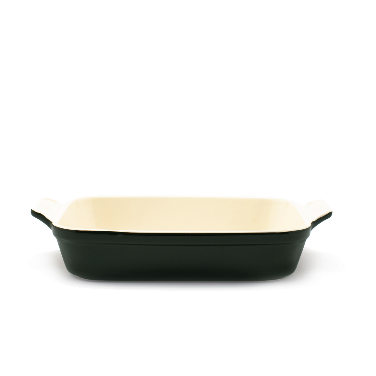 Коллекция Majolica выполнена в стиле французской традиционной утвари. Привлекательный дизайн отлично дополнит сервировку. Форма прямоугольной формы, снаружи глубокого темно-зеленого цвета, бежевого - внутри. Удобные ручки для захвата.