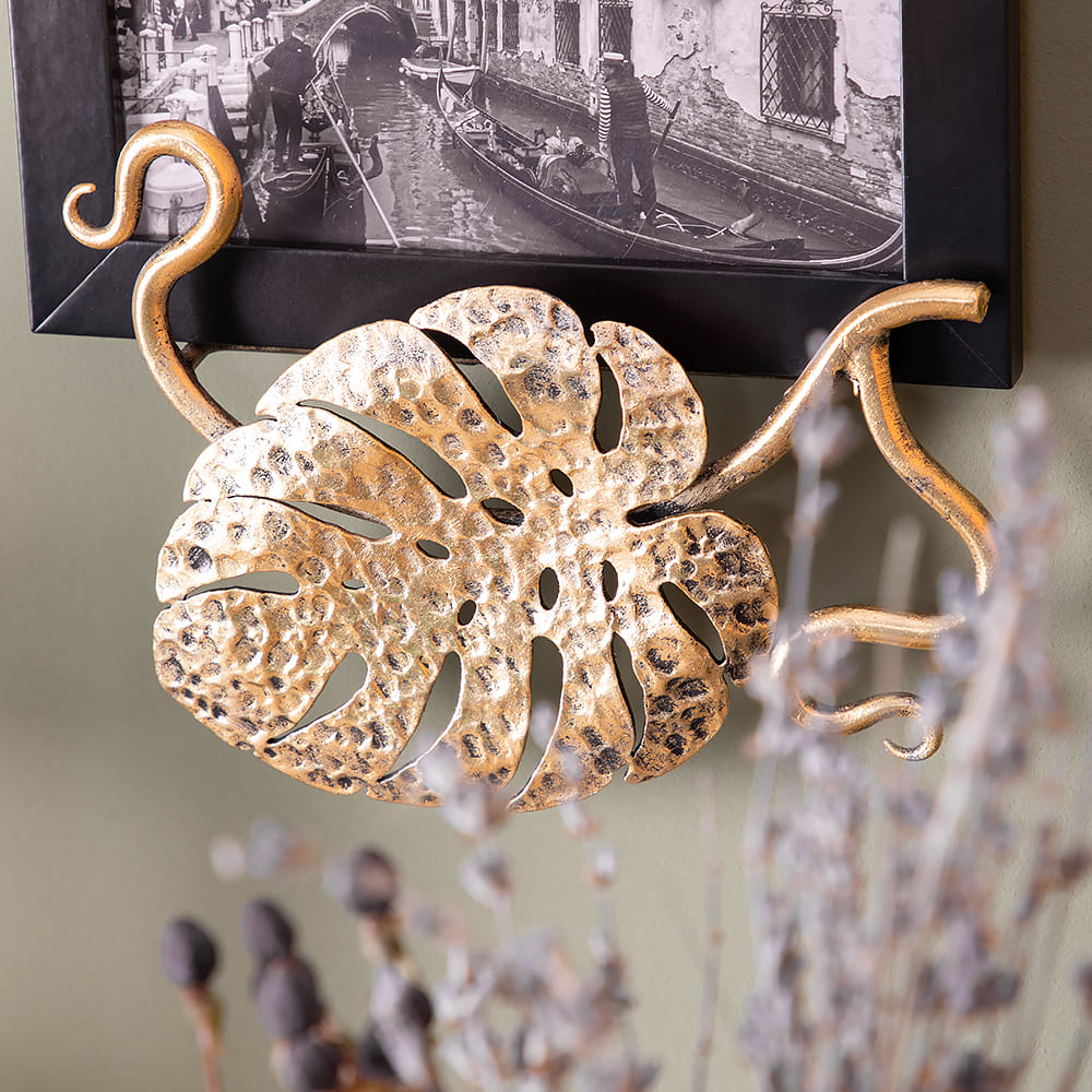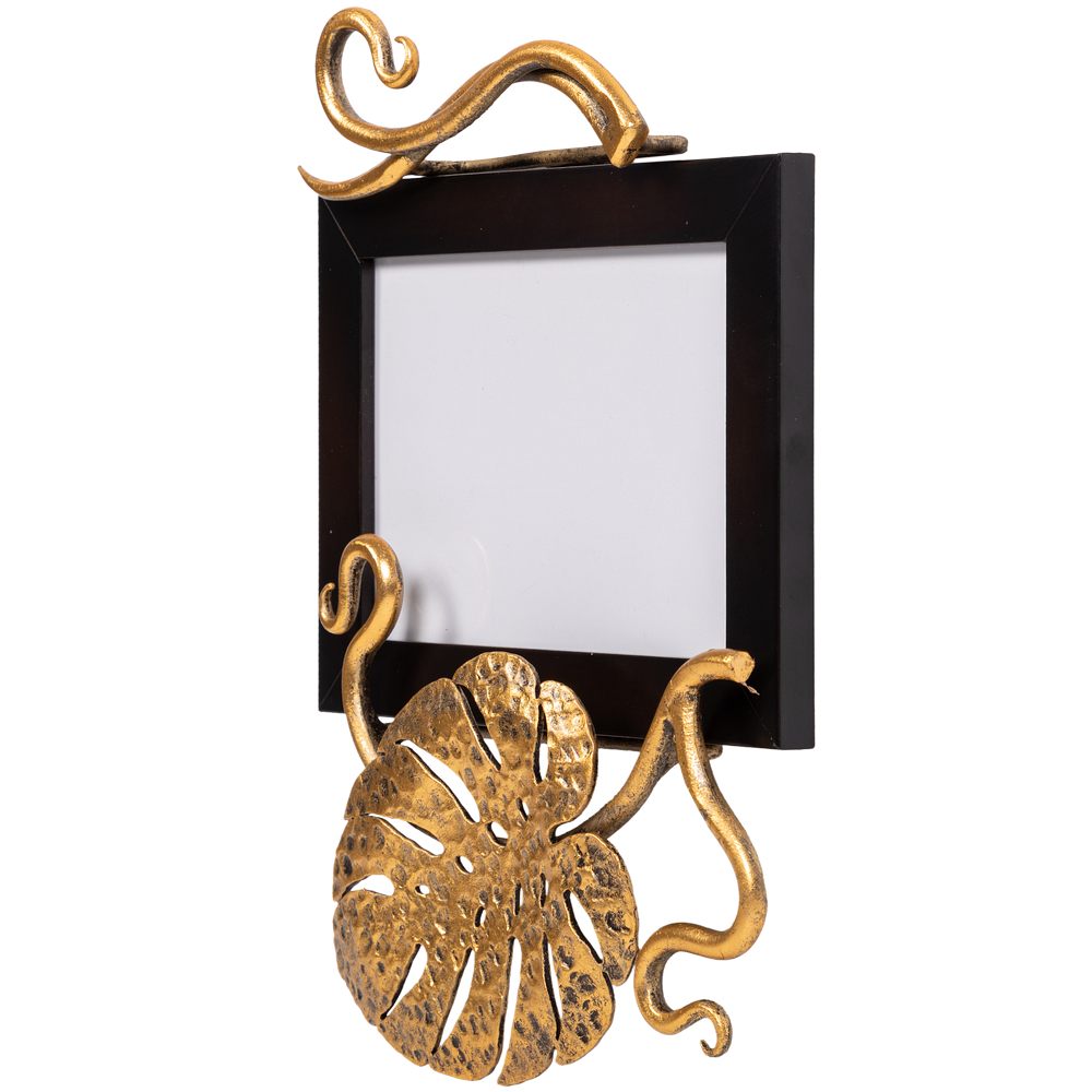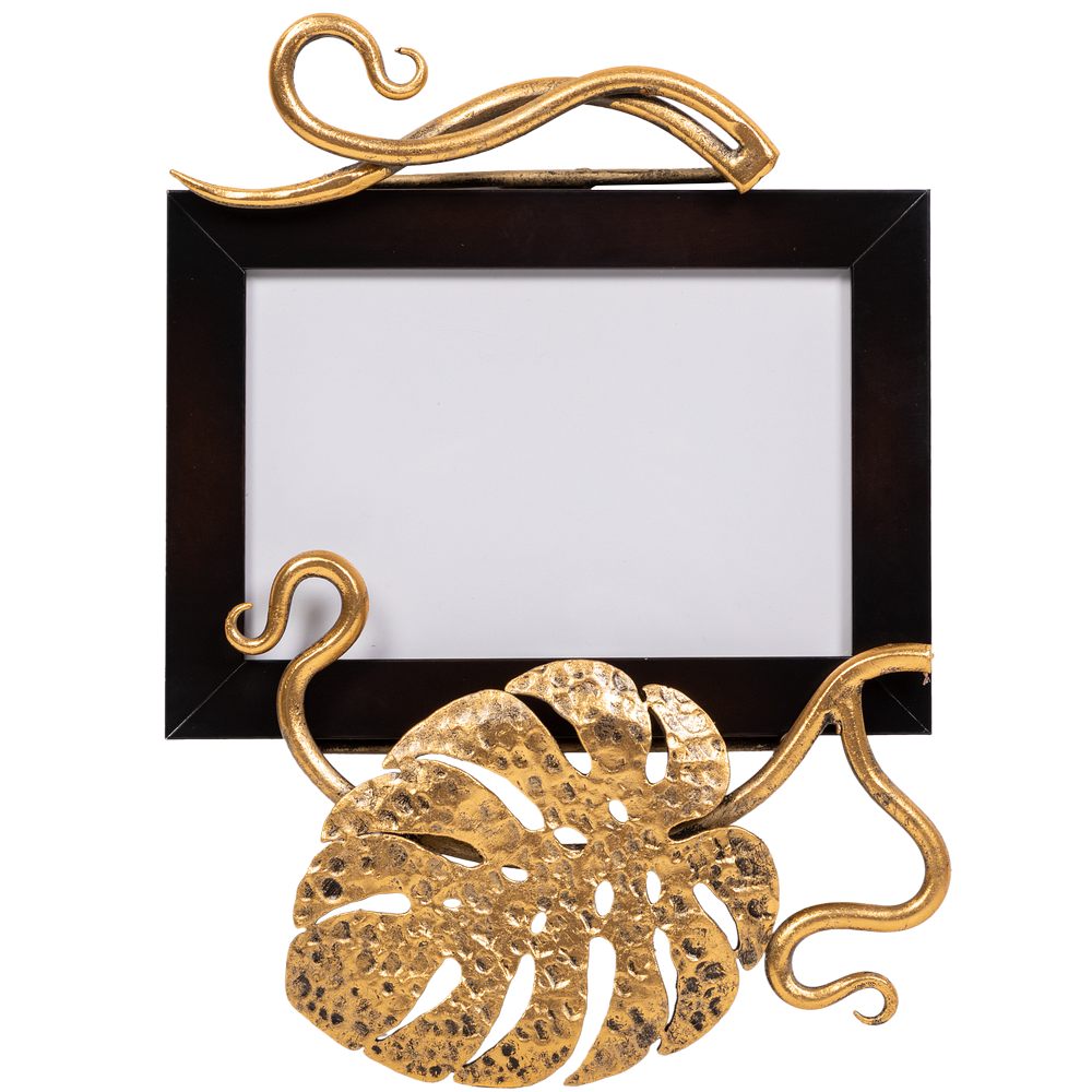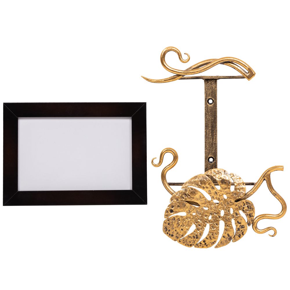 Держатель для фотографий BOGACHO на магнитах изготовлен из прочного Мдф. Декоративные элементы представляют собой переплетенные листья монстеры и выполнены полностью вручную методом горячей ковки, патинированы мастерами фабрики. Фотография защищена тонким прозрачным пластиком от пыли и других внешних воздействий. Имеются крепления для настенного подвеса.