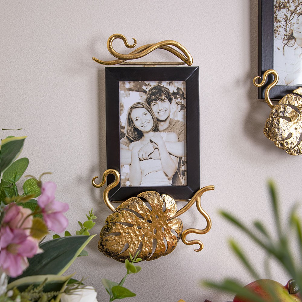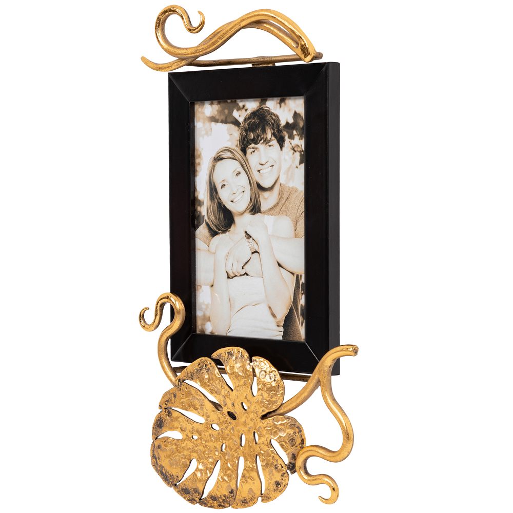Фотографии хранят самые ценные воспоминания и лучшие моменты в нашей жизни и являются большой ценностью для большинства из нас. Так здорово, когда таких радостных событий много и ими так хочется поделиться! Рамка для фотографий от российского производителя BOGACHO сохранит тепло каждого снимка! Фоторамка из дерева ручной работы не только подчеркнет все достоинства изображения, но и добавит эмоциональную нотку в декор Вашего интерьера. Держатель для фотографий BOGACHO на магнитах изготовлен из прочного Мдф. Декоративные элементы представляют собой переплетенные листья монстеры и выполнены полностью вручную методом горячей ковки, позолочены мастерами фабрики. Фотография защищена тонким прозрачным пластиком от пыли и других внешних воздействий. Имеются крепления для настенного подвеса.Самые дорогие сердцу фото хочется всегда держать на виду. Рамки для фото - это классический подарок, который не выходит из моды.Авторский дизайн делает рамку адаптивной под любой интерьер, станет прекрасным украшением для дома.Стильная рамка для фото - то, чего не хватало в вашем декоре для дома и уюта.