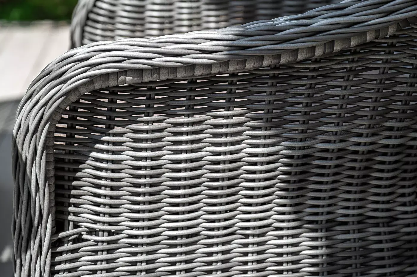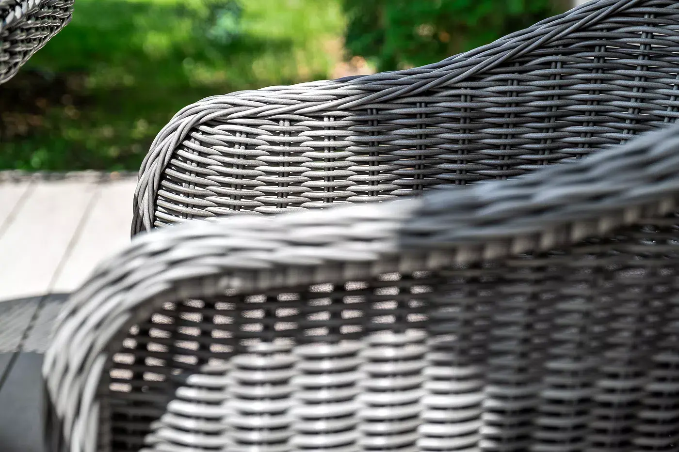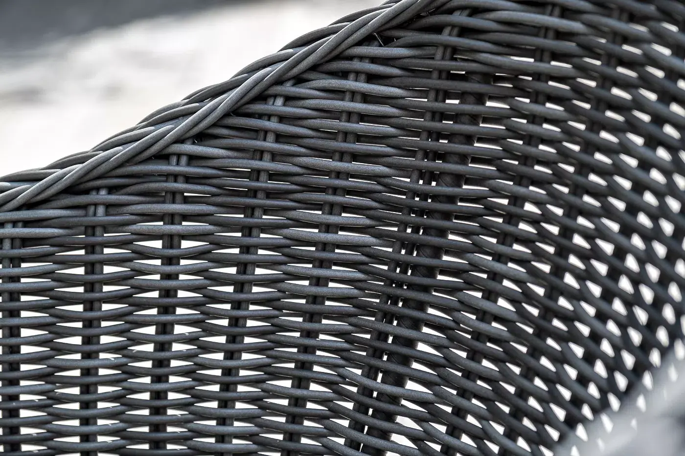 Вся мебель изготовлена из алюминия, поэтому ее очень легко перемещать. Декоративное покрытие выполнено из долговечного искусственного ротанга, устойчивого к перепадам температур и переменам погоды. Столешница изготовлена из прочного закаленного стекла 5 мм, кресла укомплектованы подушками серого цвета со съёмными чехлами.