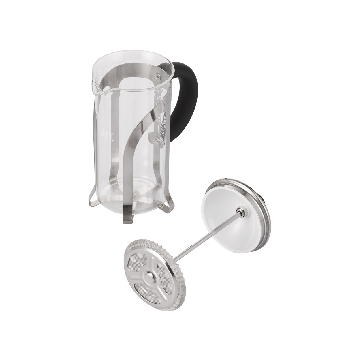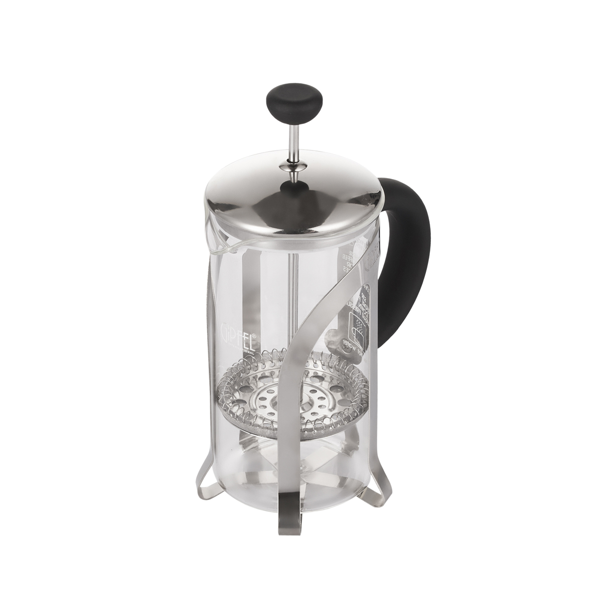 Френч-пресс Gipfel Glacier-Acropolis 7803. Объем 350 мл. Френч-пресс сделан из жаропрочного боросиликатного стекла. Помещен в хромированную оправу. Стильный минималистичный дизайн позволяет ему сочетаться в любыми предметами сервировки. Ручка удобна даже для большой ладони. Фильтр с пружинкой можно также использовать для взбивания молока.