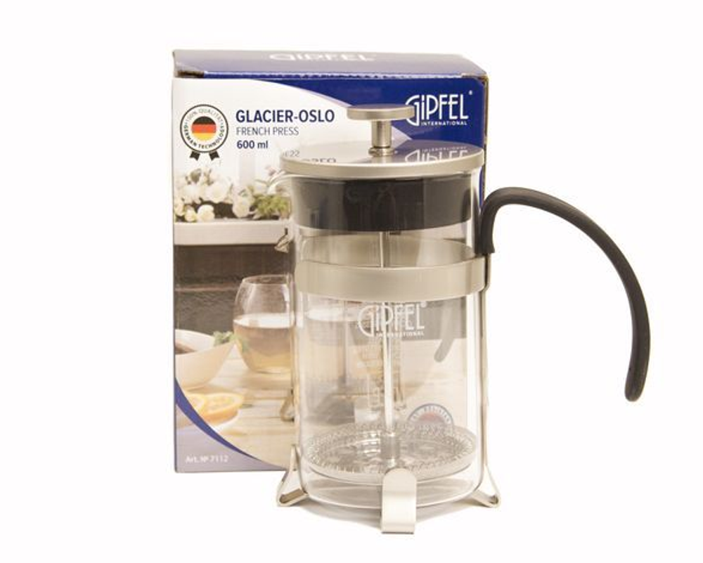 Френч-пресс GLACIER-OSLO 600мл 7112 GIPFEL . Материал: боросиликатное стекло, нерж.сталь 18/10, пластик