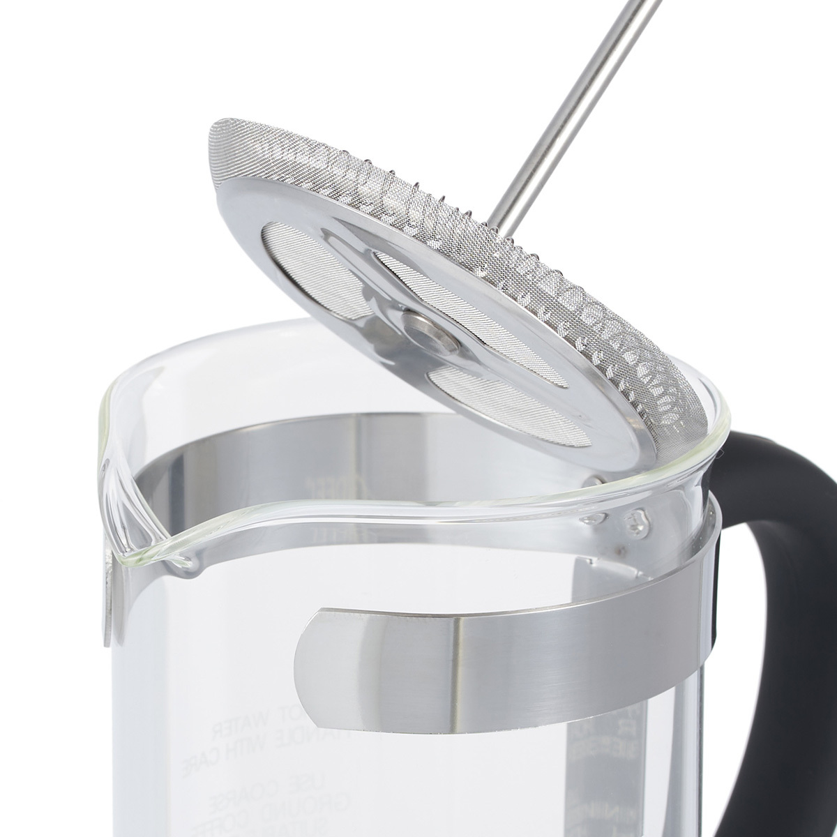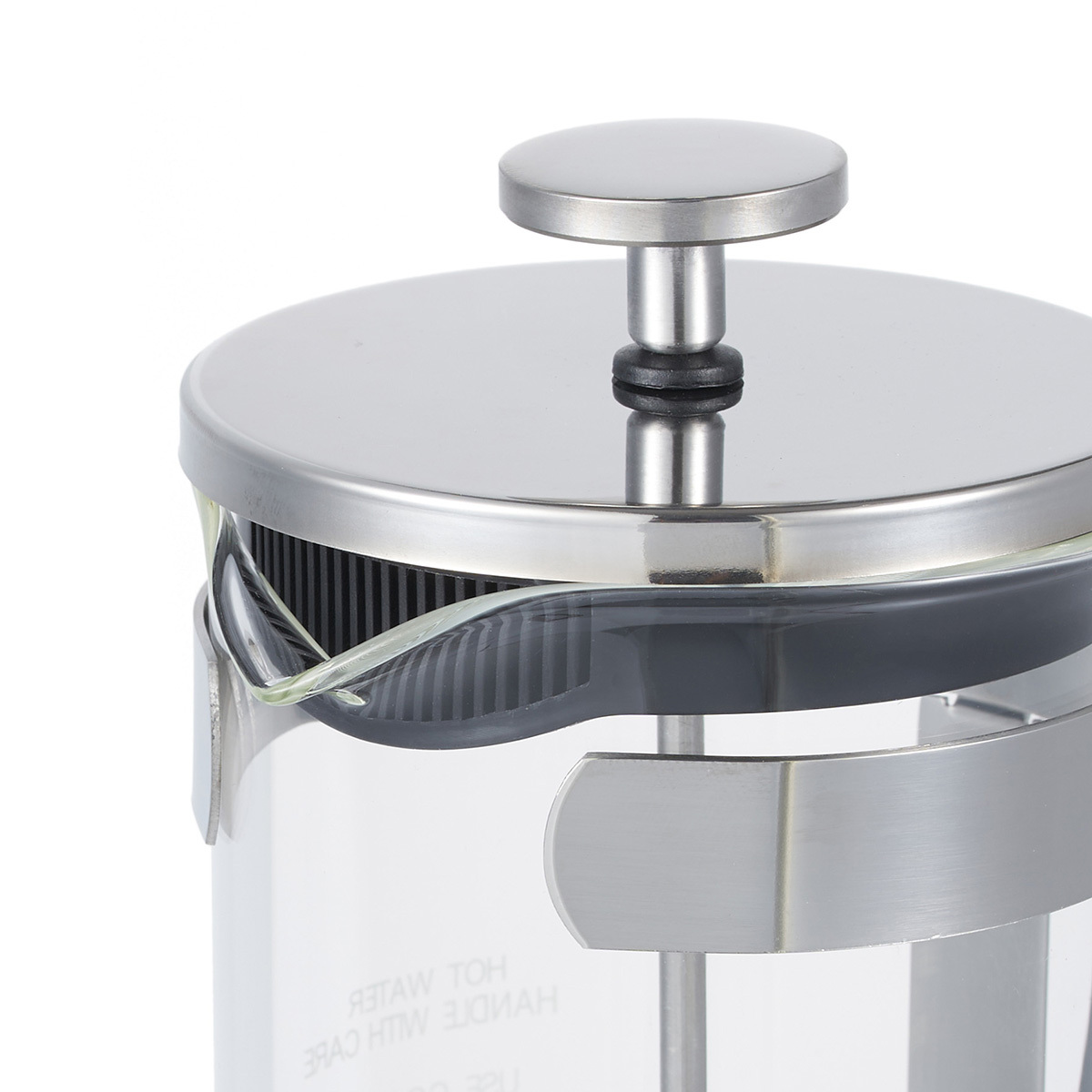 Колба френч-пресса выполнена из термостойкого жаропрочного стекла, поэтому напиток длительное время остается теплым.