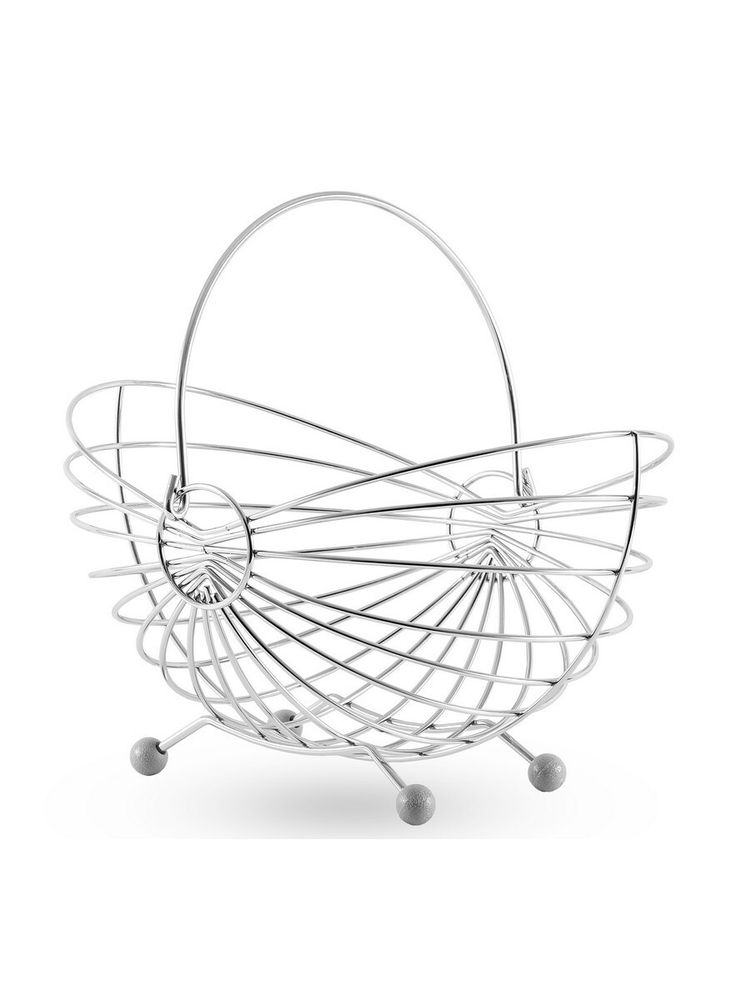 Корзина для фруктов GIPFEL 5193. Размер 31х25х18см. Корзина сделана из переплетенных хромированных стальных прутьев, имеет круглую ручку и четыре ножки. Материал экологически безопасный, а также прочный, что продлевает срок эксплуатации. Такая фруктовница не разобьется и прослужит долгое время. Не требует сложного ухода, легко чистится и моется. Кроме своей практичной функции, она является прекрасным украшением интерьера благодаря интересному дизайну.