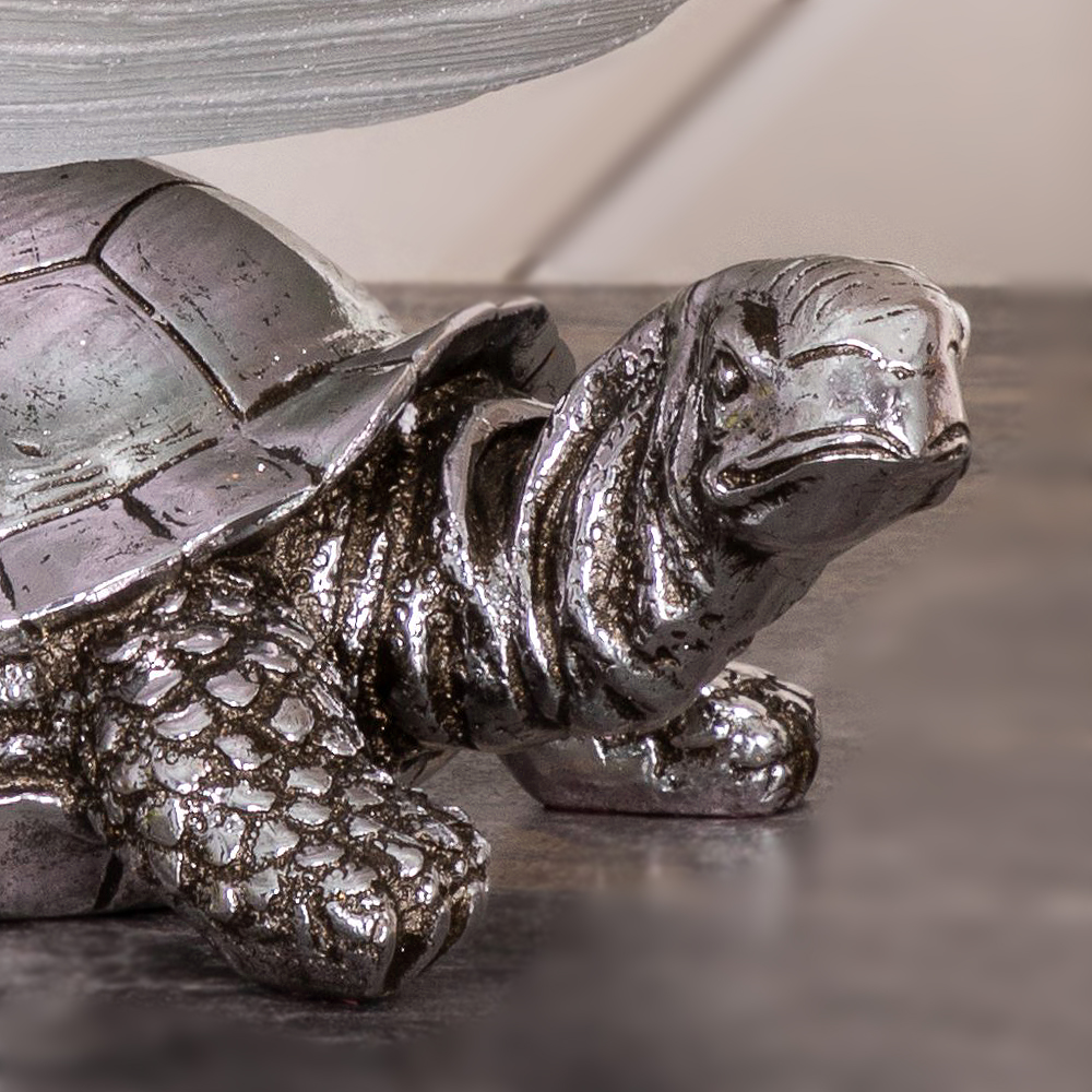 Фруктовница-конфетница «Черепаха» — стильный предмет интерьера и удобный аксессуар для сервировки. Фигурная основа из прочного литьевого мрамора в виде черепахи поддерживает стеклянную чашу, в которой изысканно смотрятся фрукты, конфеты, орехи и сладости.