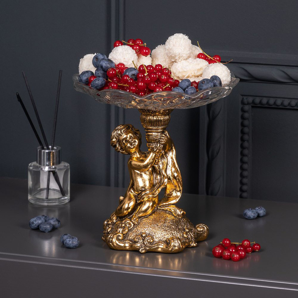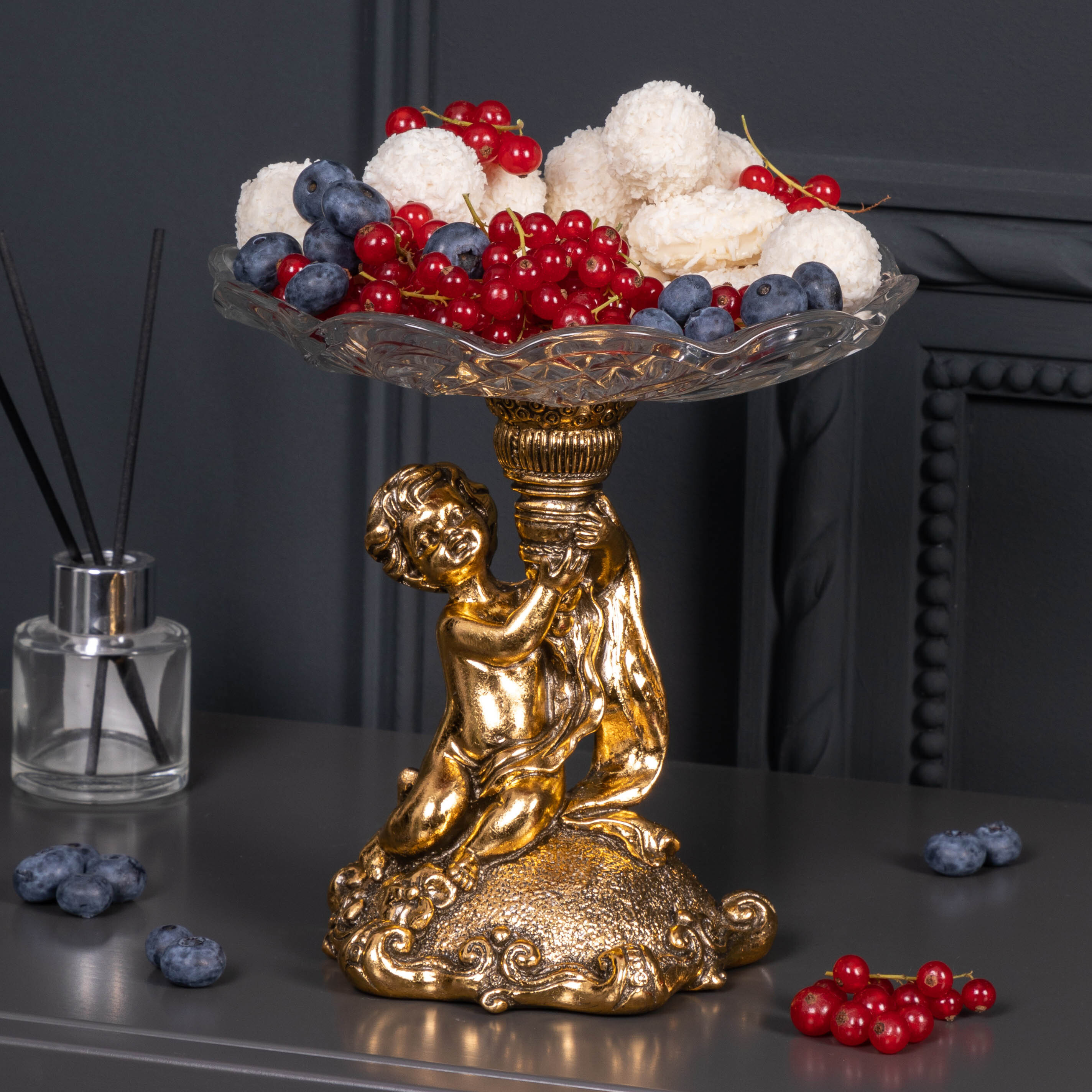 Фруктовница-конфетница Эдем со стеклянной чашей Бронза