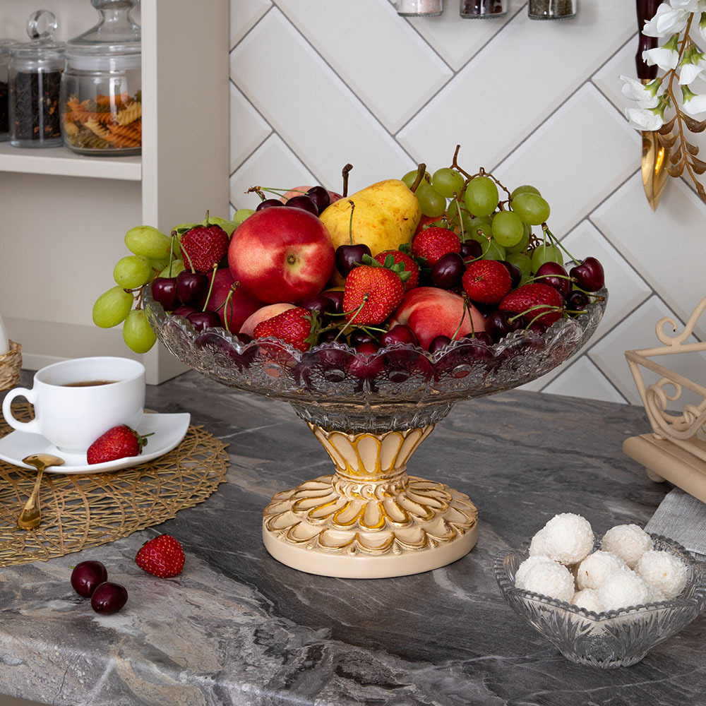 Фруктовница BOGACHO - поистине царское украшение вашего стола. Изящная ваза для фруктов отлично подойдет для конфет, печенья, пирожных, блинов и других десертов. Конфетница без крышки выглядит настолько роскошна, что ее сложно отнести к просто разряду кухонных принадлежностей, инвентарь для кухни, скорее это изысканный декор для кухни или столовой, праздничное сервировочное блюдо, которое наверняка обратит на себя внимание ваших гостей.Фруктовница - это оригинальный подарок на любой праздник.Основание фруктовницы выполнено из натурального материала – литьевого мрамора. Данный аксессуар для дома подойдет для интерьеров в стиле лофт, сканди, минимализм, эклектика, романтизм. Посуда и текстиль могут быть любыми, ведь главное украшение стола всегда у вас под рукой!Для защиты стола от царапин, мы установили накладки из мягкой ткани, препятствующая истиранию поверхности.Фруктовница на ножке завернута в воздушно - пузырчатую пленку, ложемент и надежно упакована в коробку из гофрированного картона, поэтому данный аксессуар для интерьера приедет к вам не поврежденным. Любите, чтобы интерьер был в едином стиле? Присмотритесь к продукции BOGACHO, которая будет гармонично сочетаться друг с другом.