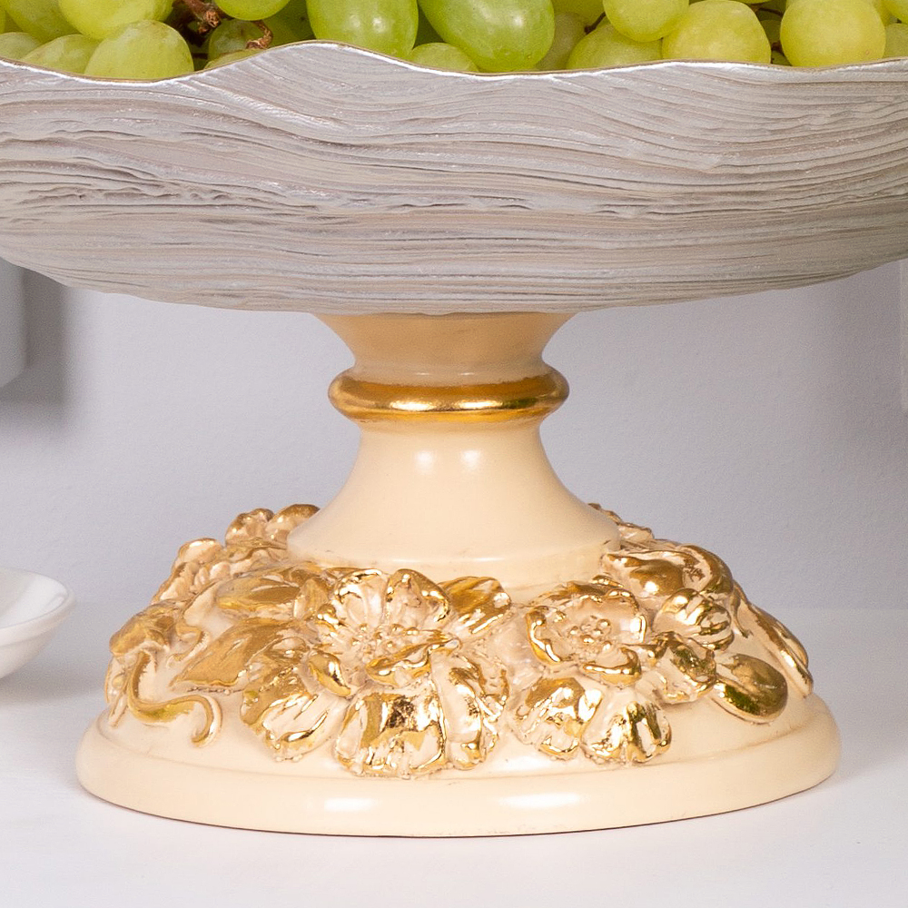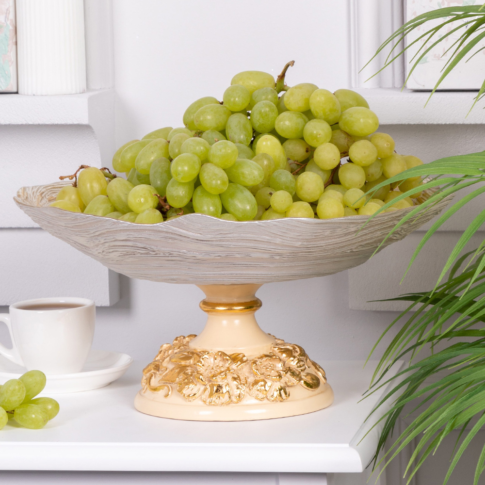 Фруктовница-конфетница «Лето» — изысканный акцент для вашего интерьера и стильный способ подать угощение. Фигурная основа из прочного литьевого мрамора поддерживает стеклянную чашу, в которой красиво смотрятся свежие фрукты, конфеты, орехи или десерты.