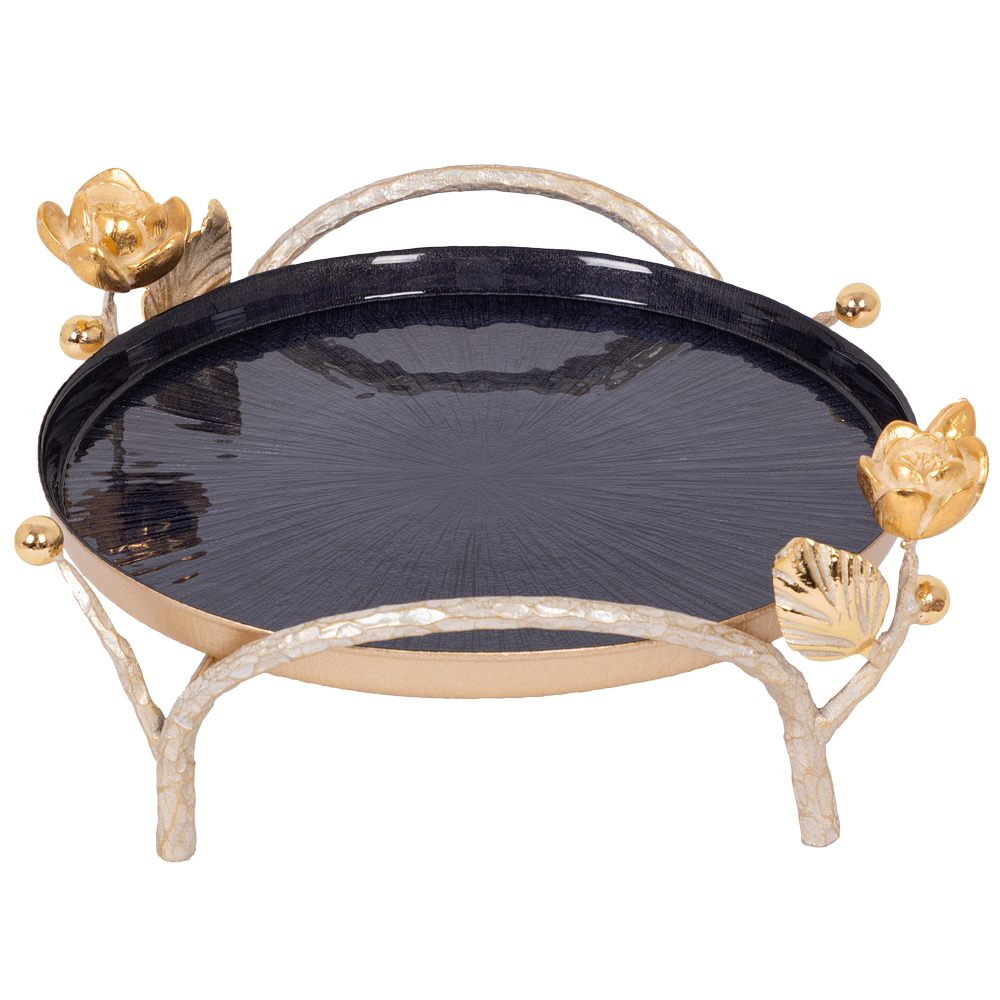 Фруктовница-конфетница Нимфея (поднос) Айвори Синий