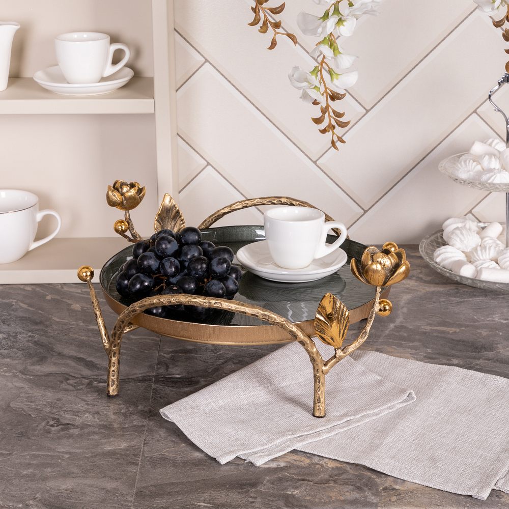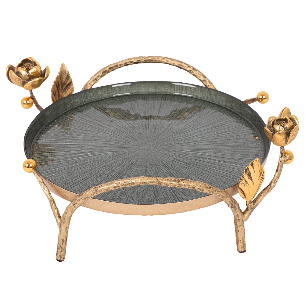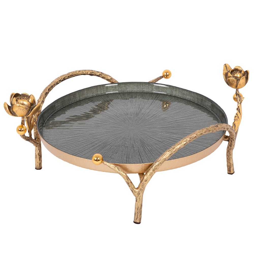 Фруктовница-конфетница Нимфея (поднос) Бронза Зеленый