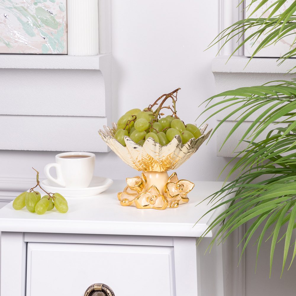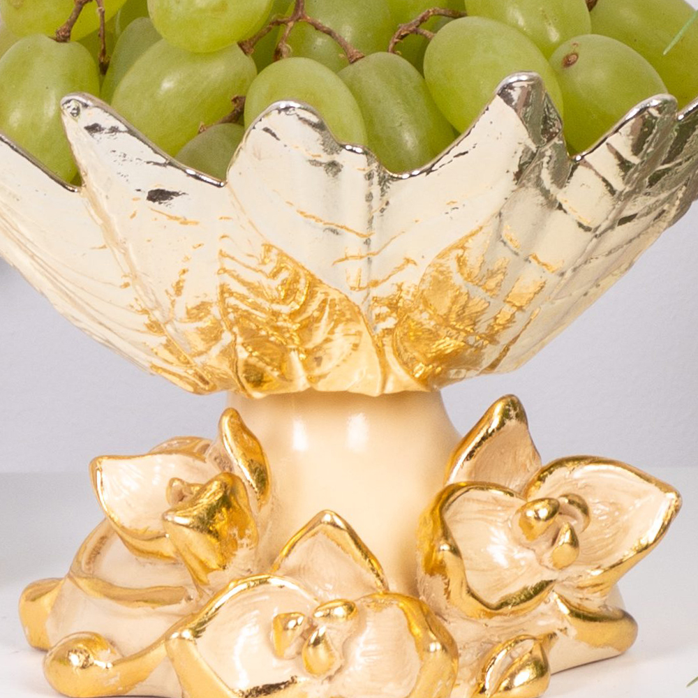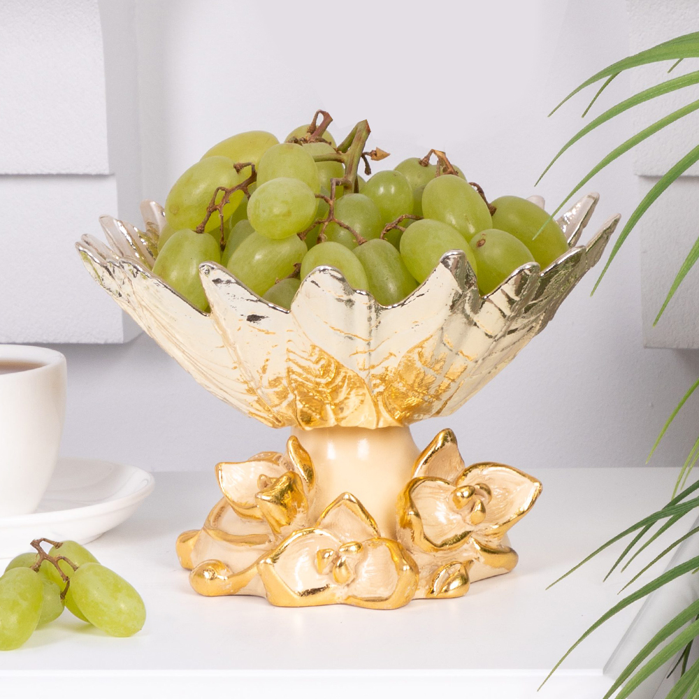 Изящные линии и образ орхидеи символизируют гармонию и красоту природы, превращая фруктовницу в настоящий арт-объект. В ней можно эффектно подать фрукты, конфеты, орехи или десерты.