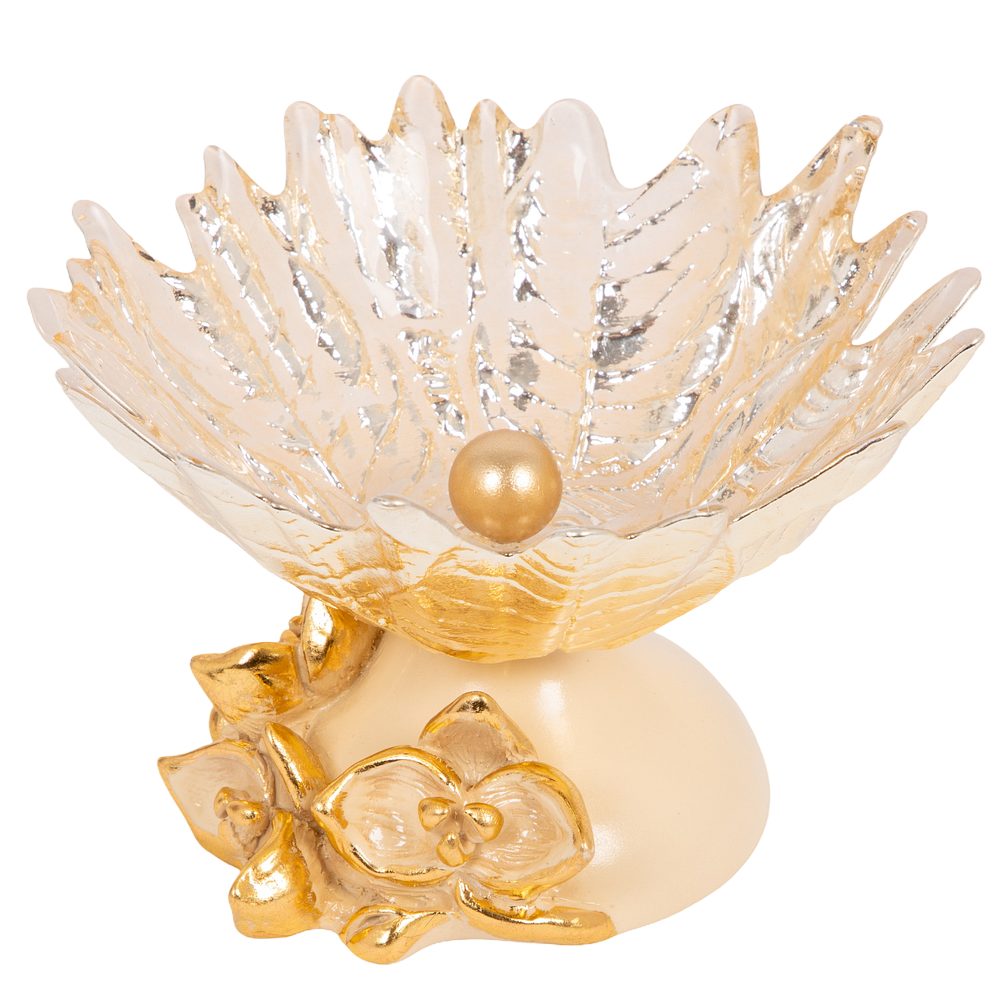 Фруктовница-конфетница «Орхидея Лайм» — утончённое сочетание изящного декора и практичности. Стеклянная чаша, закреплённая на прочной основе из литьевого мрамора, станет стильным акцентом для сервировки и интерьера.