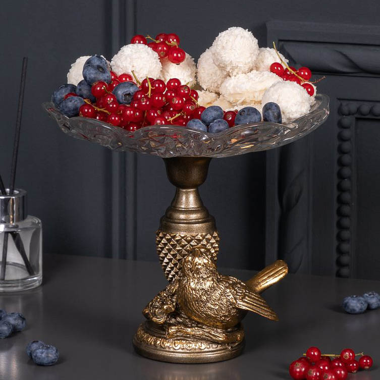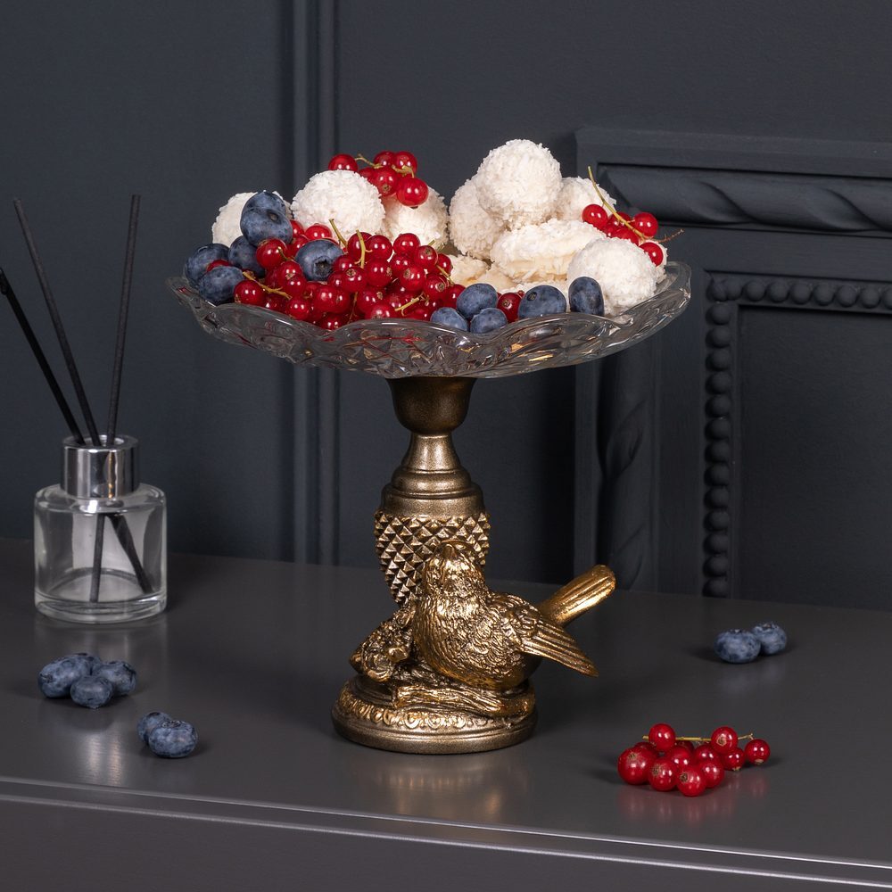 Фруктовница-конфетница Терра Сонг со стеклянной чашей Бронза