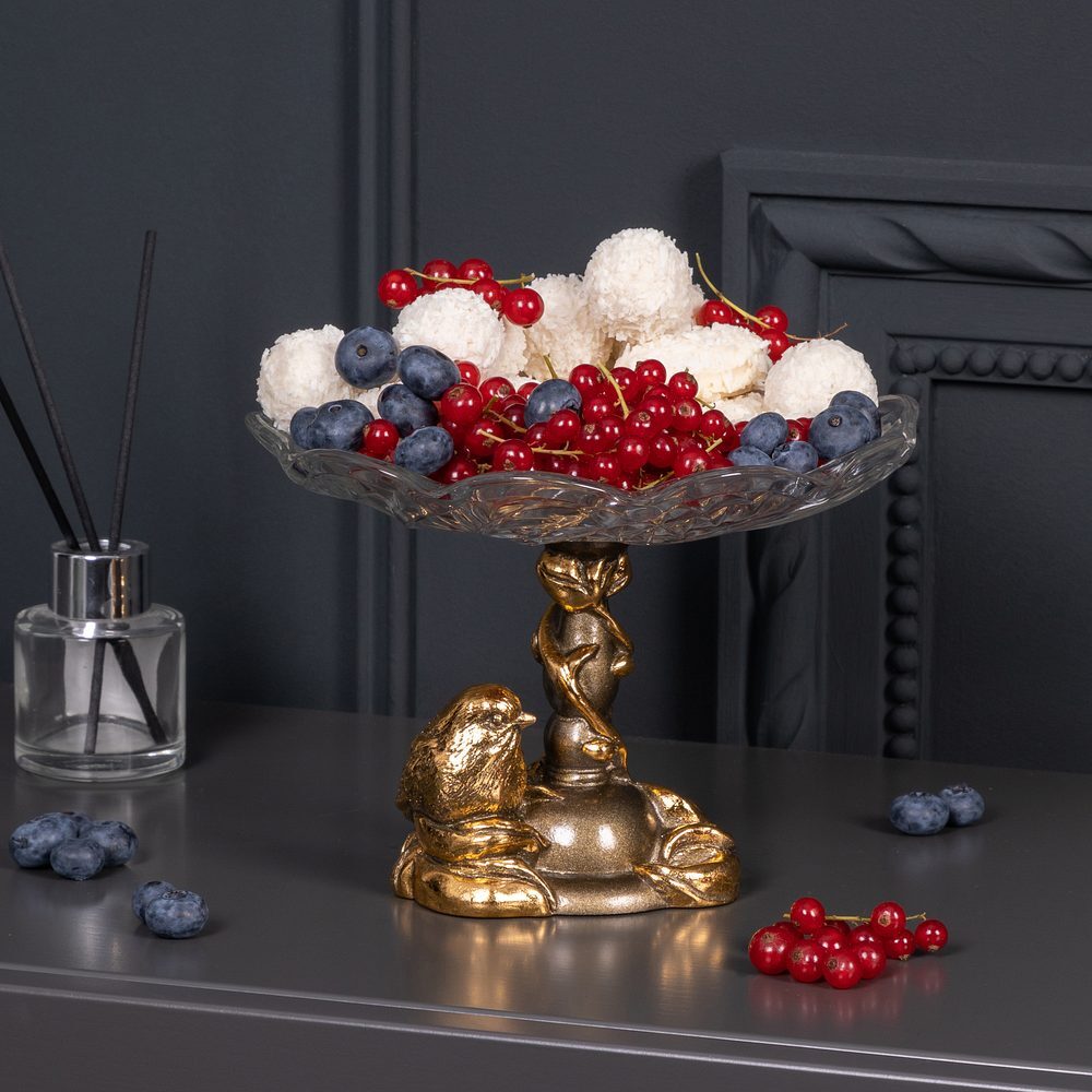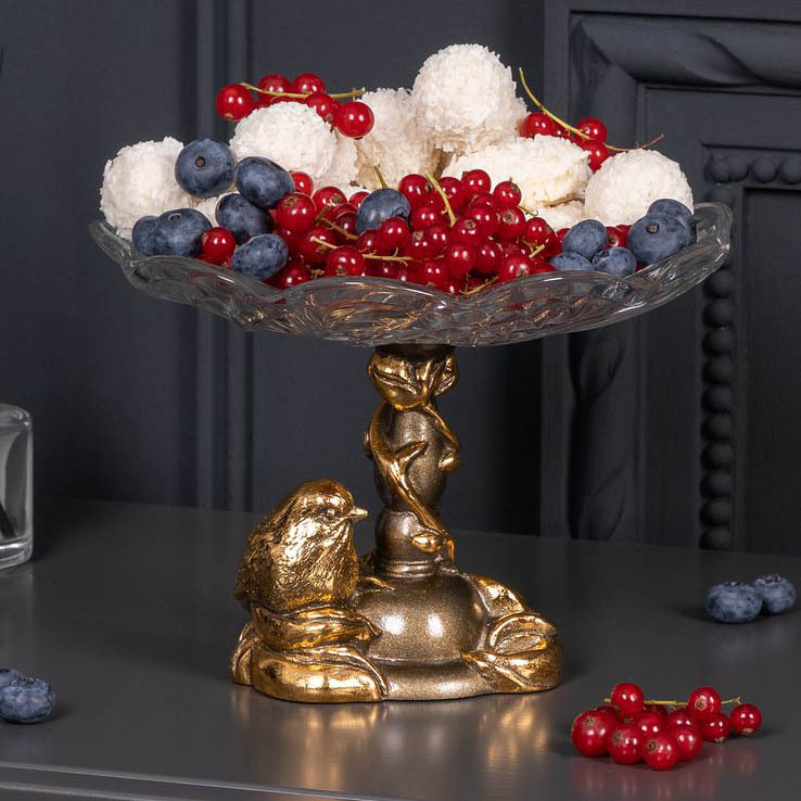 Фруктовница-конфетница Зарничка Свитти со стеклянной чашей Бронза
