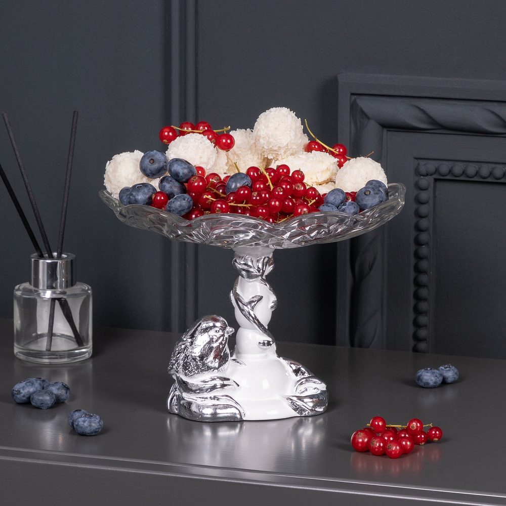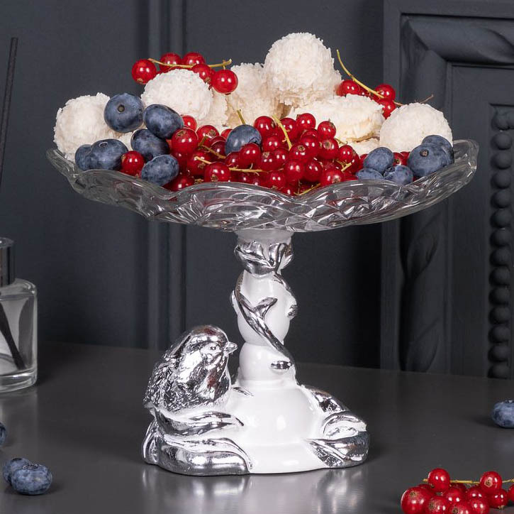 Фруктовница-конфетница Зарничка Свитти со стеклянной чашей Серебро