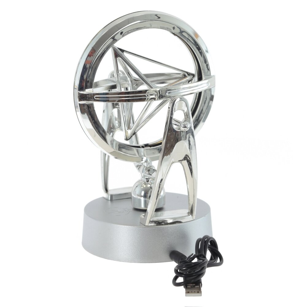 Антистресс-устройство, представленное на изображении, выполнено из полимерных материалов и металла, что обеспечивает его долговечность и современный внешний вид. Эта настольная модель движущейся конструкции напоминает научный маятник или гироскоп. Основой служит устойчивая платформа, к которой крепится вращающийся механизм. Устройство оснащено USB-кабелем для подключения к компьютеру или другому источнику питания, а также может работать от четырёх батареек типа АА (не прилагаются), что обеспечивает мобильность и удобство использования в различных условиях. Благодаря плавному движению элементов и оригинальному дизайну, антистресс-устройство помогает снять напряжение, отвлечься от рутины и создать атмосферу расслабления на рабочем месте или дома. Идеально подходит в качестве подарка для людей, ценящих стильные аксессуары и заботящихся о своем эмоциональном состоянии.