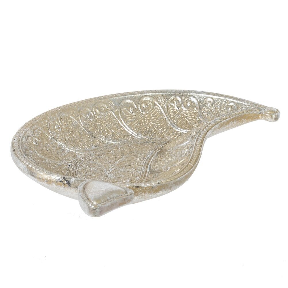 Элегантное декоративное блюдо из полимерных материалов, выполненное в форме изящного листа. Поверхность украшена тонким рельефным узором с переливающимся покрытием, создающим эффект благородного металла. Изделие станет выразительным акцентом на журнальном или кофейном столике, комоде, консоли в гостиной или прихожей. Подходит для хранения мелочей, декоративных камней, сухоцветов, ароматических свечей и прочих аксессуаров. Лёгкое, прочное и устойчивое к повреждениям, это блюдо гармонично впишется в классический, современный или гламурный интерьер и подчеркнёт безупречный вкус хозяев дома.