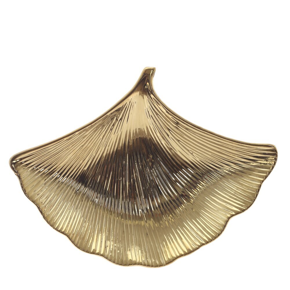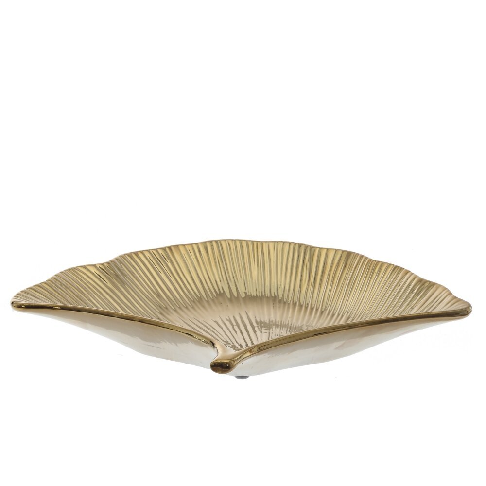 Элегантное декоративное блюдо из фарфора в форме листа станет изысканным украшением интерьера. Гладкая поверхность и тонкие рельефные линии придают ему особую утонченность. Блюдо отлично подойдет в качестве оригинального элемента декора. Фарфор обеспечивает долговечность и устойчивость к внешним воздействиям. Стильный золотой оттенок добавляет изделию современный и роскошный вид, идеально сочетаясь с классическим и современным интерьером. Такое блюдо станет прекрасным подарком для ценителей красивых аксессуаров.