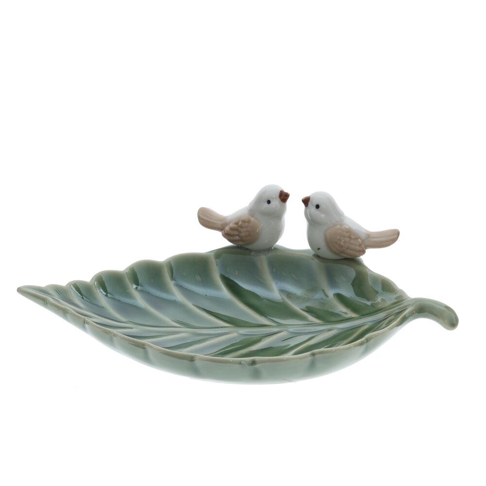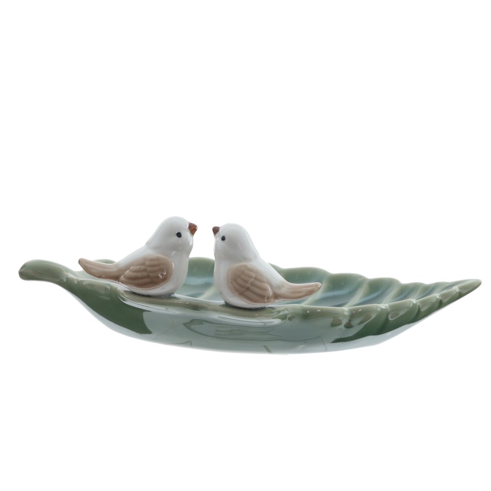 Декоративное блюдо из фарфора станет изысканным украшением вашего интерьера. Блюдо выполнено в виде большого листа с прожилками и украшено двумя фигурками птиц, что добавляет ему особого уюта и очарования. Такое изделие гармонично впишется в любую обстановку – будь то классика или современный стиль. Блюдо можно использовать как самостоятельный элемент декора, так и для сервировки сладостей, фруктов или небольших угощений. Фарфор отличается высокой прочностью и долговечностью, а глянцевая поверхность делает блюдо особенно нарядным. Этот аксессуар прекрасно подойдет в качестве подарка для ценителей изысканных вещей и станет необычным акцентом в любой комнате вашего дома.