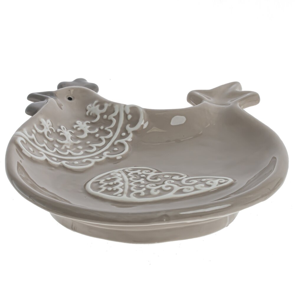 Это изысканное блюдо в форме курочки станет ярким акцентом в вашем пасхальном декоре. Изделие идеально подходит для подачи угощений или как элемент декора. Керамика серо-бежевого цвета с белым узором создает теплую и уютную атмосферу, а плавные линии и аккуратные детали придают ему утонченный вид. Блюдо станет отличным дополнением к пасхальному столу или подарком для близких, ведь оно не только функционально, но и прекрасно подчеркивает праздничное настроение. Разместите его на видном месте, чтобы привлечь внимание гостей и создать уникальную атмосферу. Это изделие прекрасно впишется в любые интерьеры, от классического до современного.