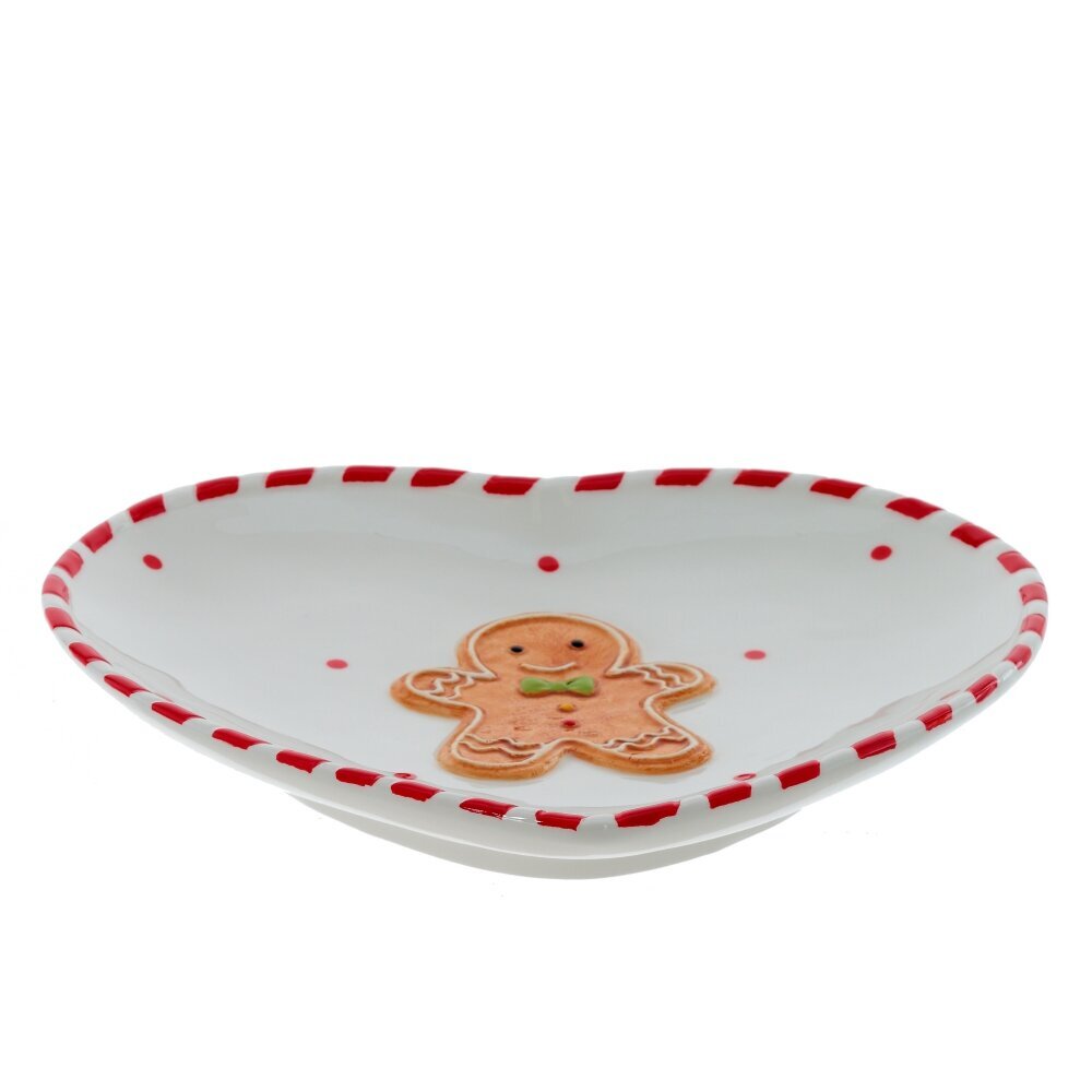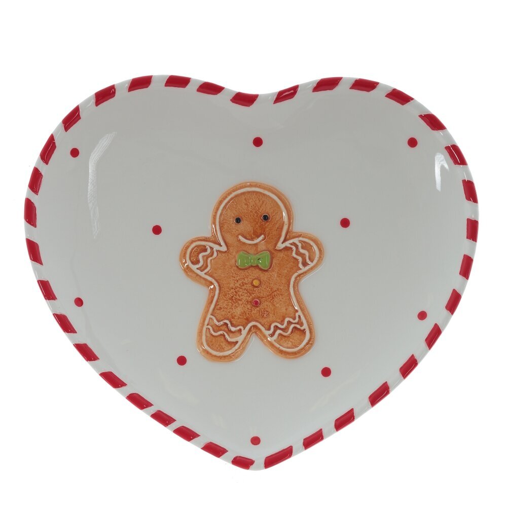 Изумительная керамическое блюдо в форме сердца и декором в виде пряничного человечка. Это изделие послужит украшением праздничного стола и создаст в интерьере красочный позитивный акцент. Такой роскошный подарок вызовет массу приятных эмоций и добрых улыбок.