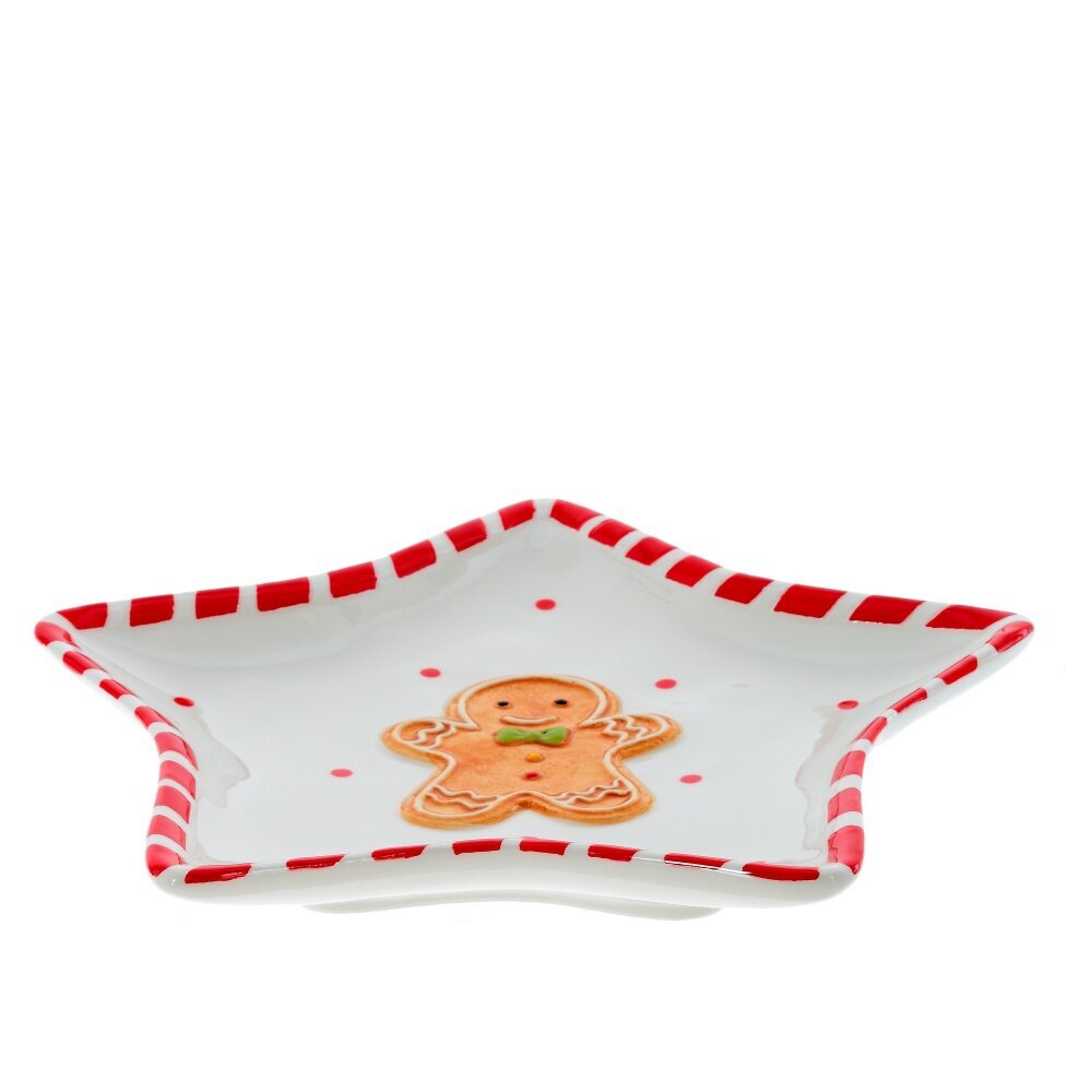 Изумительное керамическое блюдо в форме звезды с декором в виде пряничного человечка. Это изделие послужит украшением праздничного стола и создаст в интерьере красочный позитивный акцент. Такой роскошный подарок вызовет массу приятных эмоций и добрых улыбок.