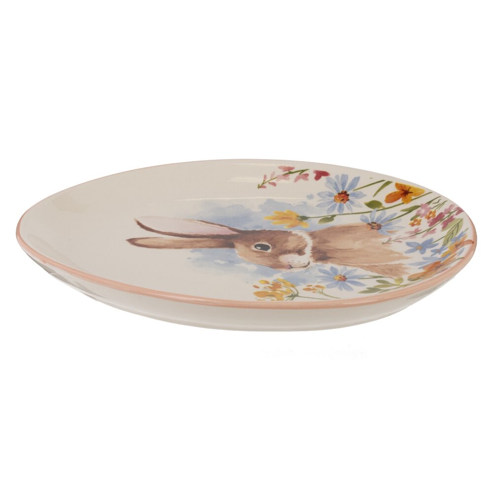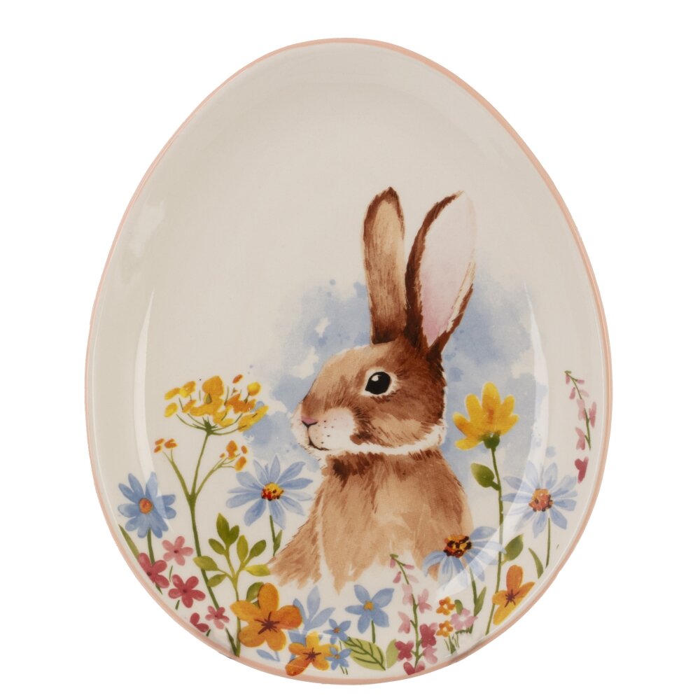 Это керамическое блюдо станет прекрасным дополнением к пасхальному столу и украсит ваш дом весенним настроением. На его поверхности изображен очаровательный бежевый заяц, который весело расположился среди ярких желтых и голубых цветов. Дизайн блюда вызывает ассоциации с радостью и возрождением, делая его идеальным атрибутом для празднования Пасхи. Узкие бортики гармонично подчеркивают центральный рисунок, создавая эффект глубины и объемности. Это блюдо подойдет для подачи закусок, десертов или может использоваться как декоративный элемент. Оно станет отличным подарком для друзей и близких, которые ценят стильные и уникальные предметы. Праздничное оформление вашего стола будет завершено благодаря этому изделию, которое привнесёт тепло и уют в любой дом.