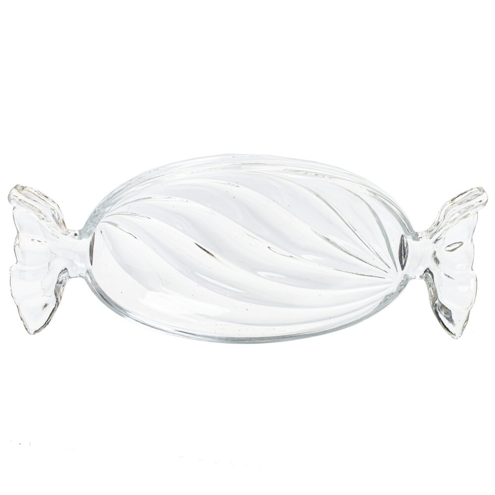 Блюдо из прозрачного стекла в форме конфеты - это стильный и элегантный аксессуар для сервировки стола. Оно идеально подходит для подачи конфет, печенья или других сладостей, добавляя визуальный интерес и изысканность к вашему столу.