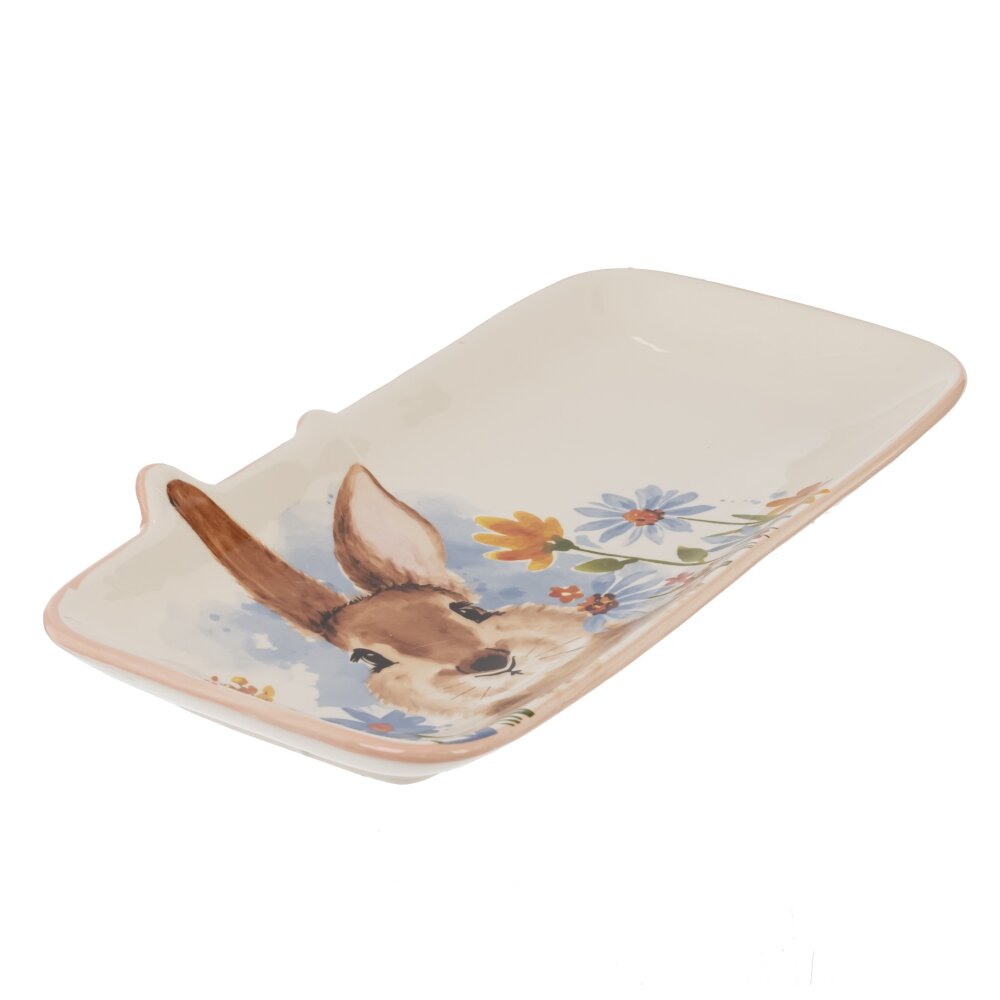 Это керамическое блюдо станет прекрасным дополнением к пасхальному столу и украсит ваш дом весенним настроением. На его поверхности изображен очаровательный бежевый заяц, который весело расположился среди ярких желтых и голубых цветов. Дизайн блюда вызывает ассоциации с радостью и возрождением, делая его идеальным атрибутом для празднования Пасхи. Узкие бортики гармонично подчеркивают центральный рисунок, создавая эффект глубины и объемности. Это блюдо подойдет для подачи закусок, десертов или может использоваться как декоративный элемент. Оно станет отличным подарком для друзей и близких, которые ценят стильные и уникальные предметы. Праздничное оформление вашего стола будет завершено благодаря этому изделию, которое привнесёт тепло и уют в любой дом.