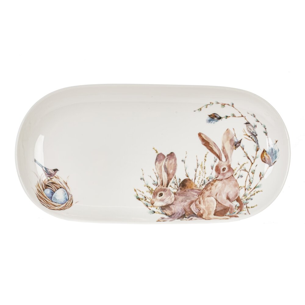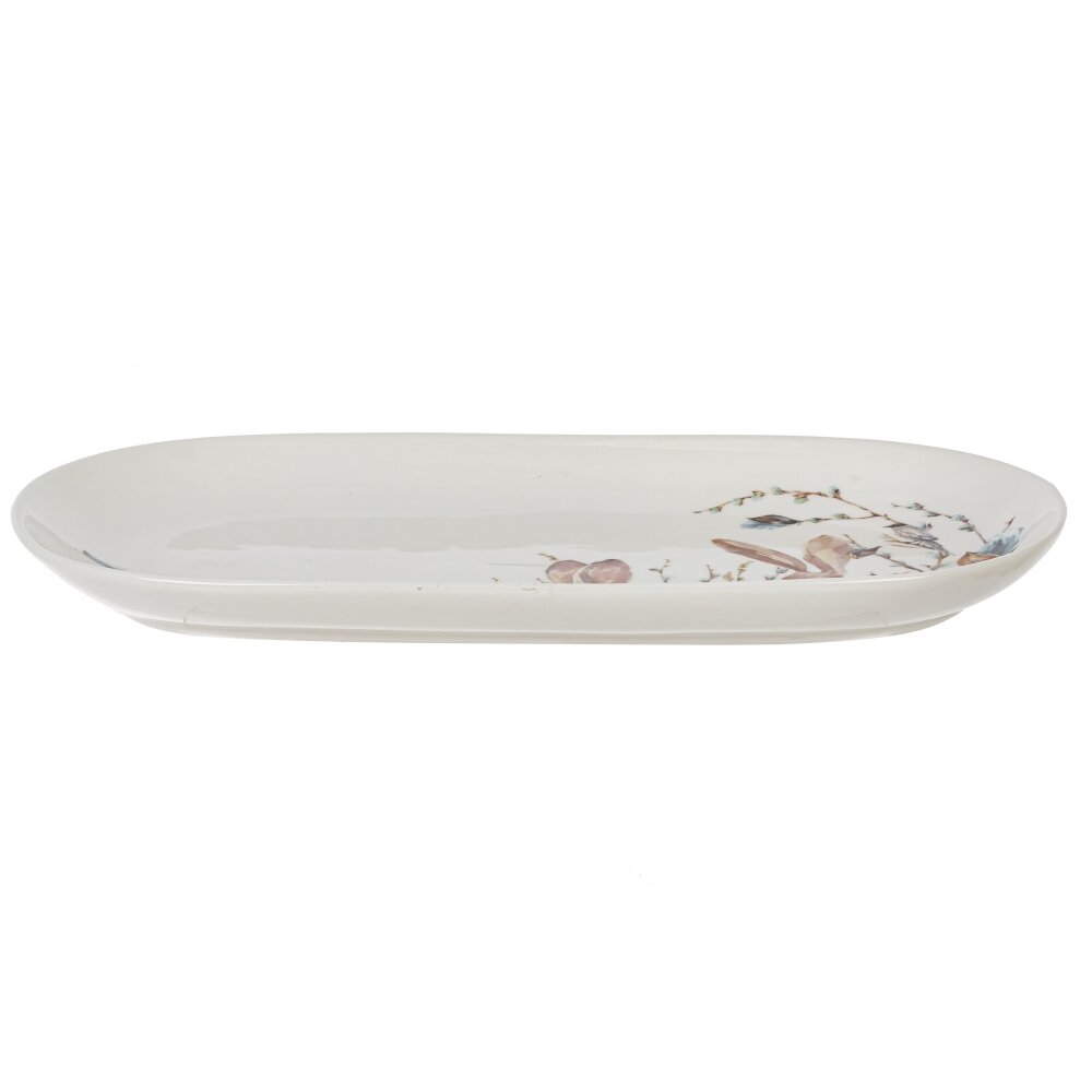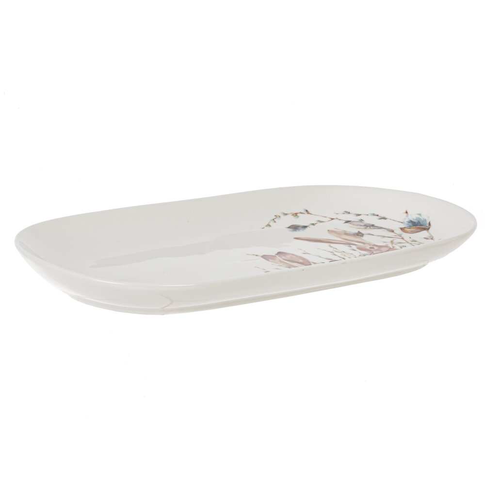 Этот элегантное фарфоровое блюдо станет прекрасным дополнением к празднованию Пасхи. Овальная форма создает ощущение утонченности, а белый фон служит идеальной основой для нежно бежевого пасхального рисунка. Такое оформление придаст столу светлый и радостный вид, наполняя атмосферу теплом и уютом. Это блюдо не только красиво, но и функционально. Оно прекрасно подойдет как для подачи украшенных пасхальных блюд, так и для демонстрации традиционных сладостей, таких как куличи, пирожные и другие десерты. Благодаря своей универсальности, блюдо можно использовать не только на Пасху, но и на других семейных праздниках и торжествах. Стильный дизайн также делает его идеальным подарком для близких.