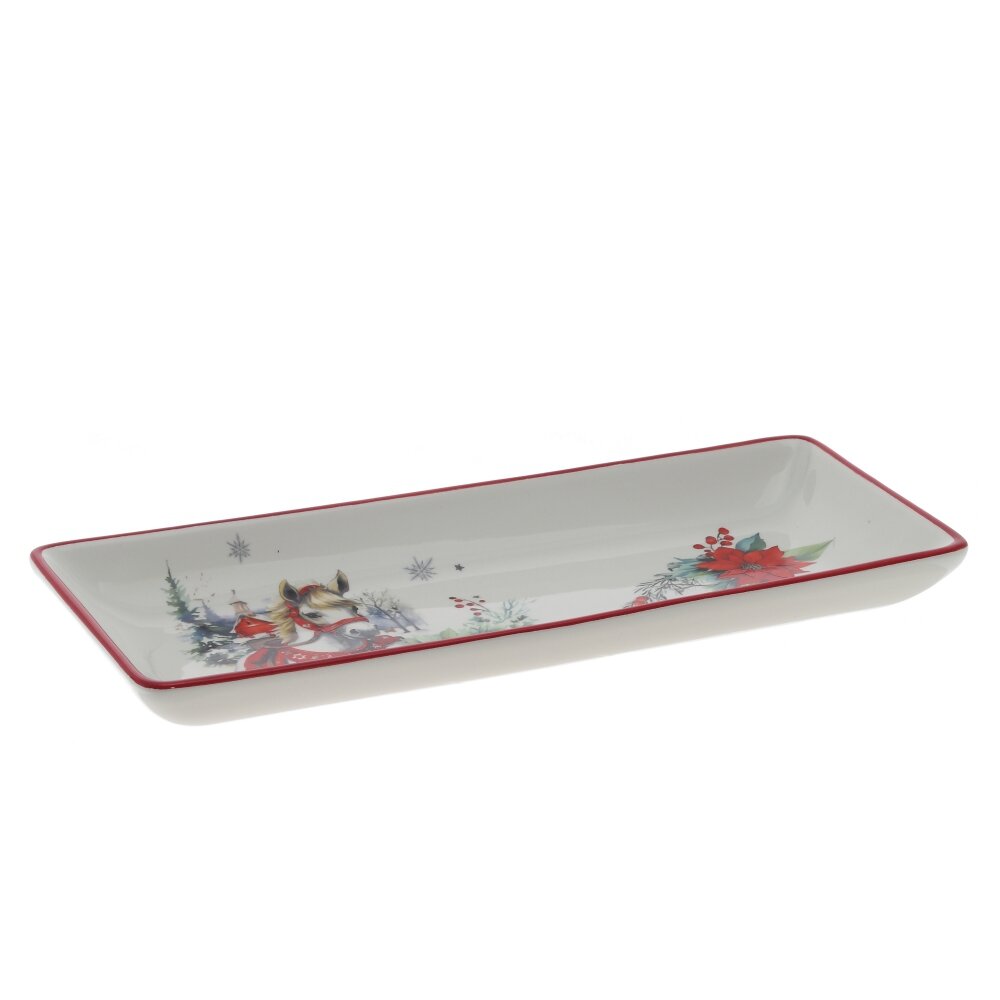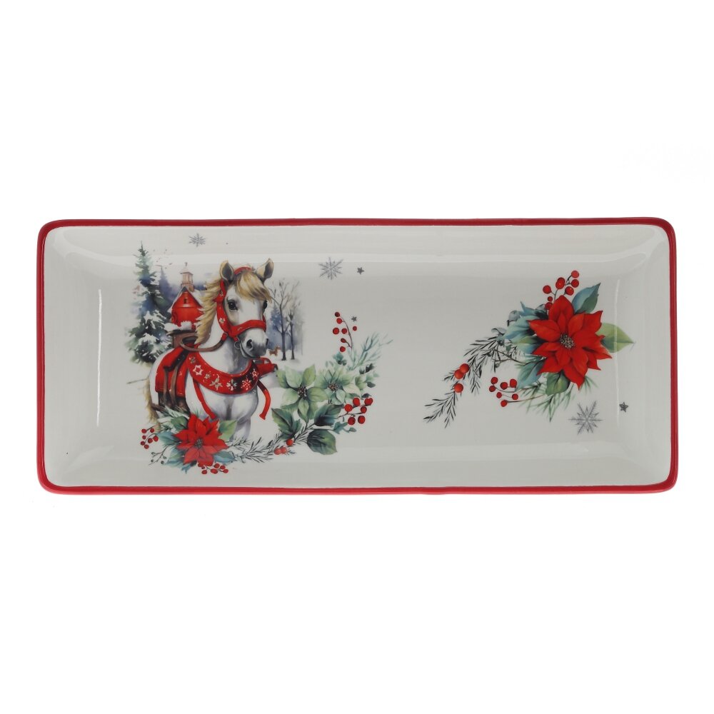 Праздничное блюдо с новогодним декором и символом 2026 года — изящной лошадкой — станет прекрасным дополнением праздничного интерьера или оригинальным подарком к Новому году. Изготовленное с вниманием к деталям, оно украшено яркими зимними элементами: снежинками, веточками и праздничными акцентами, создающими волшебное настроение. Блюдо упаковано в стильную подарочную коробку, что делает его готовым решением для подарка родным, коллегам или друзьям. Символ года — лошадка — символизирует силу, стремление вперёд и благополучие, придавая изделию особую смысловую ценность.