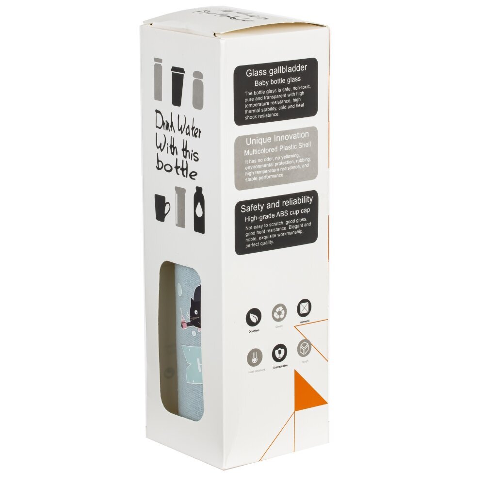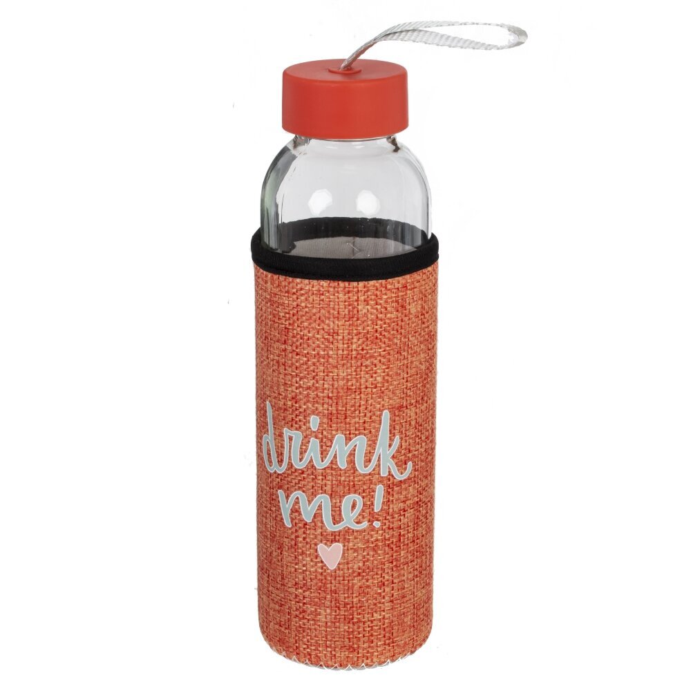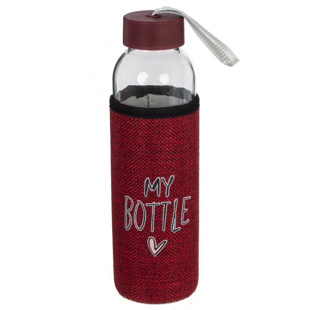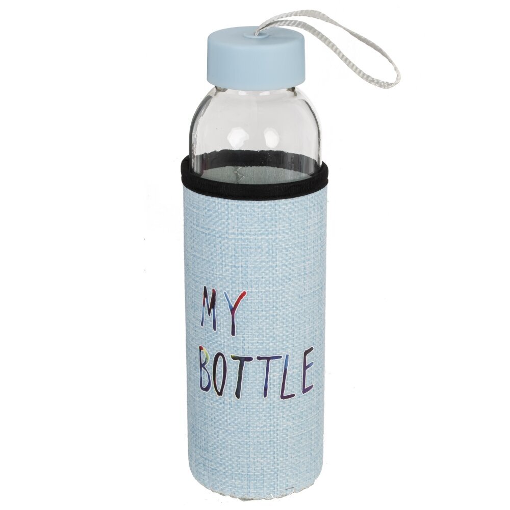 Стильная бутылка объёмом 500 мл из прозрачного стекла с чехлом из текстильного материала. На чехле принт с надписью — милый подарочный акцент. Плотная завинчивающаяся крышка из полимерного материала выполнена в тон и дополнена удобной петлёй?шнурком для переноски. Чехол защищает стекло от царапин, уменьшает скольжение и конденсат, его можно снять для мытья. Экологичная многоразовая бутылка подходит для воды и других прохладных напитков дома, в офисе и в дороге, компактная форма легко помещается в сумку или подстаканник. Представлено в четырех вариантах.