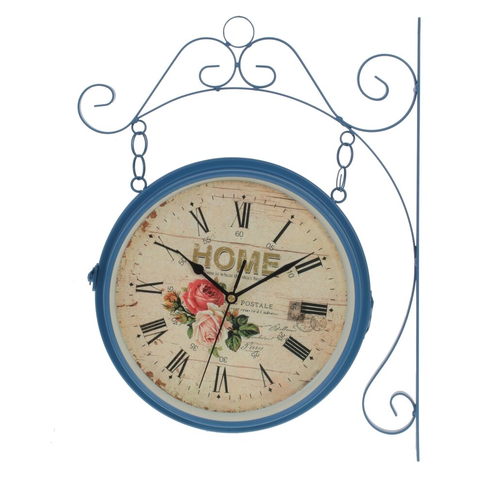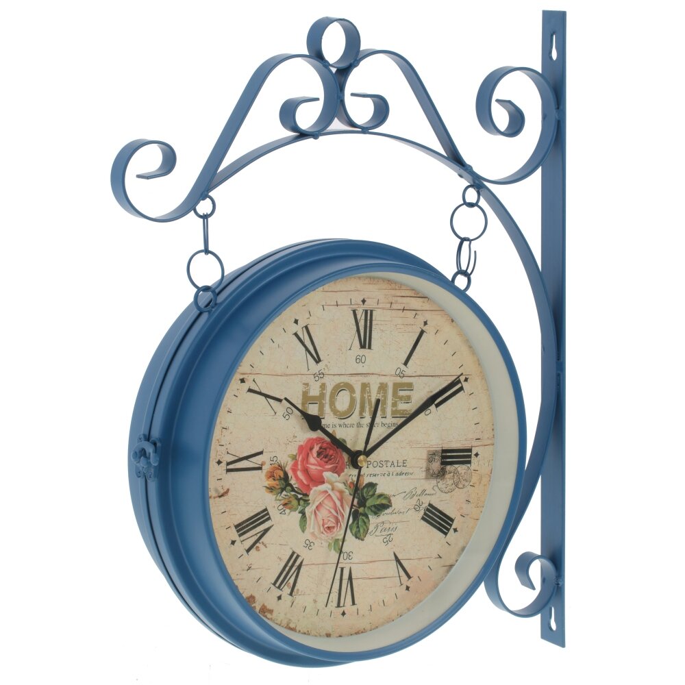 Круглые настенные часы двухсторонние, диаметром 22 см, имеет три стрелки - часовая, минутная, секундная, кварцевый механизм. С обеих сторон цифры - римские. Крепятся на стену с помощью кронштейна. Работают от 2 батареек типа "АА" ( в комплект не входят).