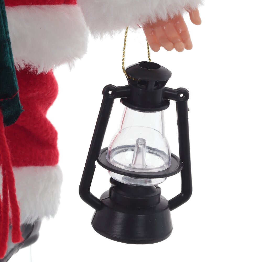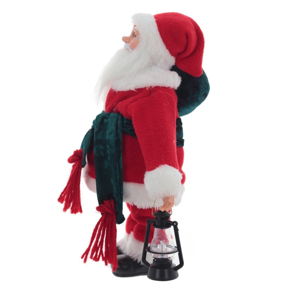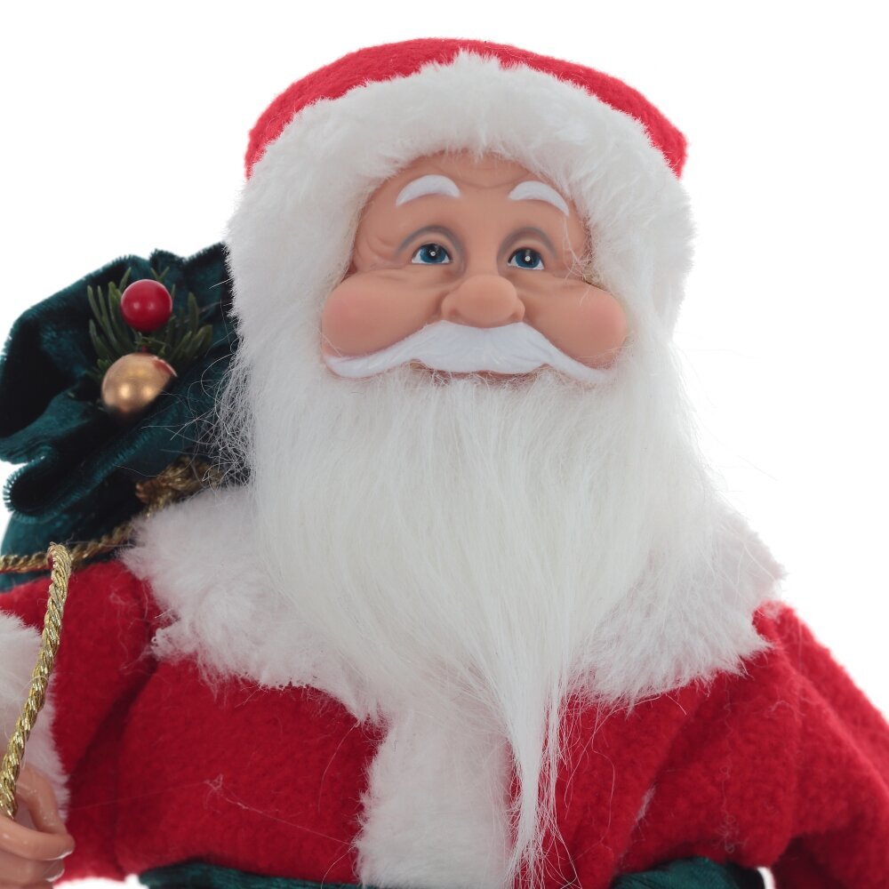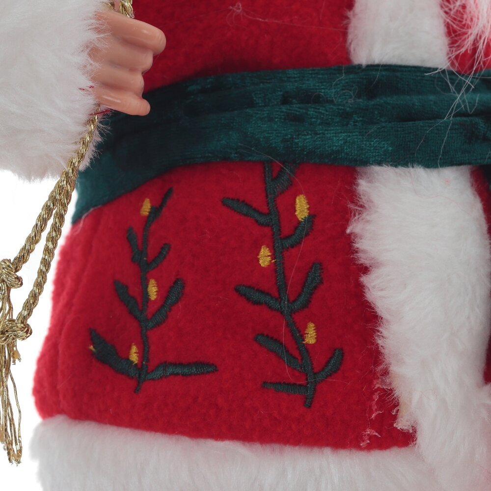 Декоративный Дед Мороз высотой 30 см - очаровательный символ новогоднего праздника! Он одет в традиционный красный костюм с белым мехом, украшенный вышивкой и широким зеленым бархатным поясом. Мешок с подарками перекликается с поясом, создавая гармоничный образ. Руки и лицо из полимерных материалов придают Деду Морозу выразительность и живость. В его руке фонарь, который создает волшебную атмосферу праздника.