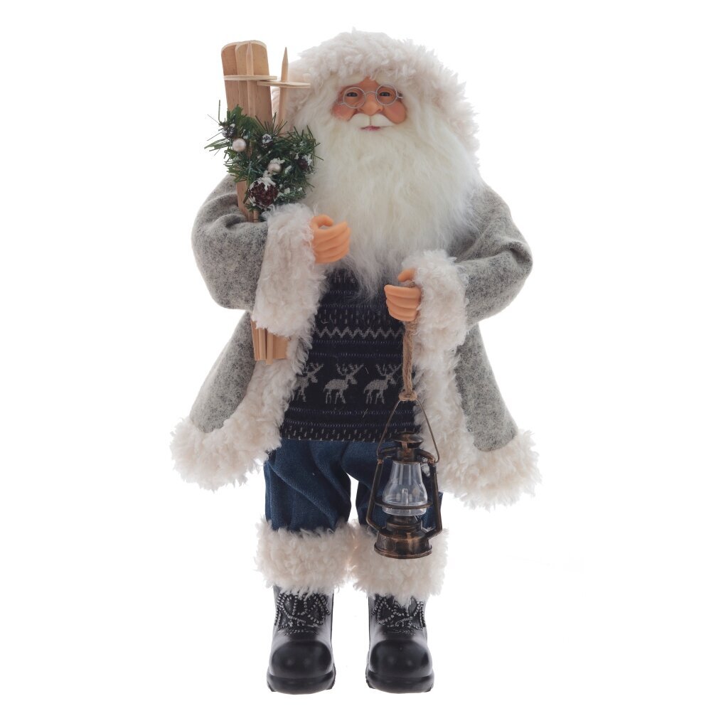 Дед Мороз – это очаровательная декоративная кукла, высотой 61 см, которая сразу же привлекает внимание своей яркой и запоминающейся внешностью. Он одет в стильное серое пальто с аккуратной меховой отделкой, что придает ему ощутимый зимний шарм. Уютный синий свитер, ставит акцент на его добродушный образ и теплоту. В руках у дедушки лыжи, которые символизируют активный зимний отдых и фонарик, чтобы не заблудится в сумерках. Лицо куклы выполнено с особым вниманием к деталям: добрый взгляд, трогательные черты лица и выразительные глаза делают его живым и непосредственным. Руки и сапоги выполнены из полимерных материалов, что обеспечивает долговечность и сохранность внешнего вида. Пушистая борода дополняет образ, подчеркивая традиционные черты. Эта декоративная кукла станет прекрасным украшением вашего дома в зимний сезон, создавая волшебную атмосферу праздника и уюта.