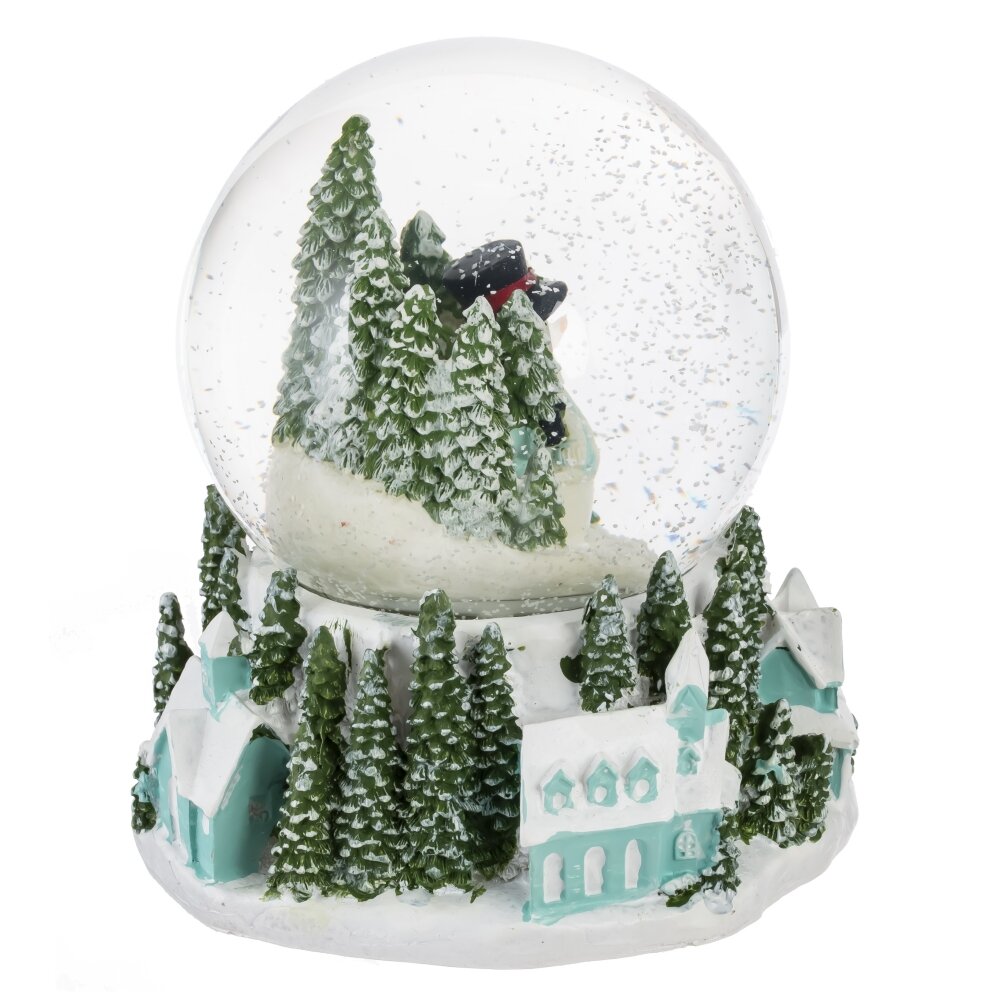 Декоративный новогодний сувенир "Снеговик/Дом" является чарующим элементом праздничного интерьера. Уникальная полимерная подставка в виде снежной деревни с елками создает атмосферу волшебства. Внутри стеклянного шара диаметром 10 см представлены либо домик, либо снеговик. При включении рычажка на дне подставки начинается музыкальное сопровождение, цветная подсветка и волшебная вьюга из мелких белых хлопьев глиттера наполняют пространство магией. Встроенные восемь новогодних мелодий создадут атмосферу праздника. Два режима работы с музыкой или без позволяют выбрать подходящую обстановку. Чтобы оживить световые и звуковые эффекты, требуется три батарейки типа ААА (не прилагаются).
