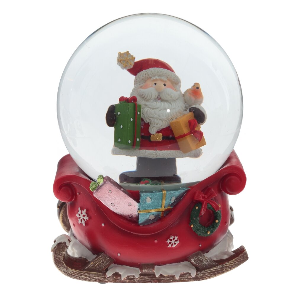 Новогодний снежный шар с фигуркой Деда Мороза внутри подарит вам праздничное настроение и радость. Завораживающее зрелище разворачивается внутри: при встряхивании поднимаются вверх сотни белых хлопьев, создавая эффект снегопада, а при повороте заводного ключа начинает играть знакомая мелодия "В лесу родилась елочка". Изделие станет прекрасным подарком для родных и близких. Внимание: при длительном нахождении в минусовой температуре возможно образование льда, который сместит фигурки и повредит шар. Наличие воздушной прослойки внутри водяного шара является технической необходимостью производства.