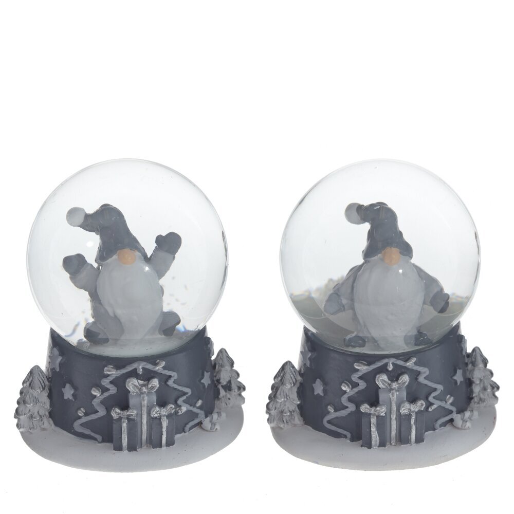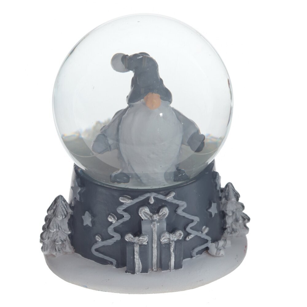 Новогодний снежный шар с фигуркой Гнома подарит вам праздничное настроение и радость. Завораживающее зрелище разворачивается внутри: при встряхивании поднимаются вверх сотни мелких белых хлопьев, создавая эффект снежной вьюги. Изделие станет прекрасным подарком для родных и близких. Представлено в двух вариантах. Внимание: при длительном нахождении в минусовой температуре возможно образование льда, который сместит фигурки и повредит шар. Наличие воздушной прослойки внутри водяного шара является технической необходимостью производства.