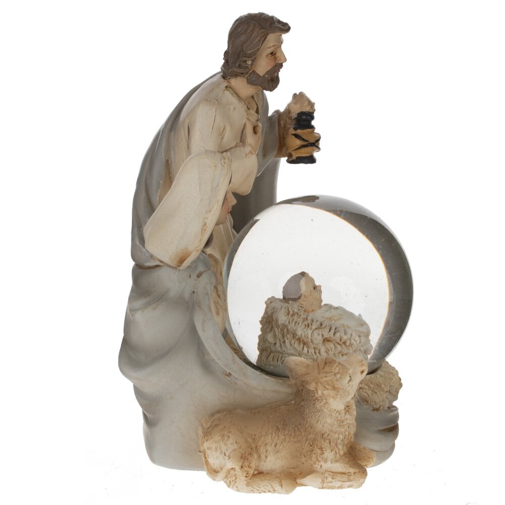 Декоративная фигурка в стеклянном шаре создает волшебную сцену Рождества, изображая Марию, Иосифа и младенца Иисуса, уютно устроившегося в своей колыбельке внутри шара. Шар наполнен жидкостью с белыми хлопьями, которые при встряхивании создают эффект снежного покрова и праздничной магии. Эта фигурка станет идеальным подарком или украшением интерьера, олицетворяя дух Рождества и радость семейных встреч.