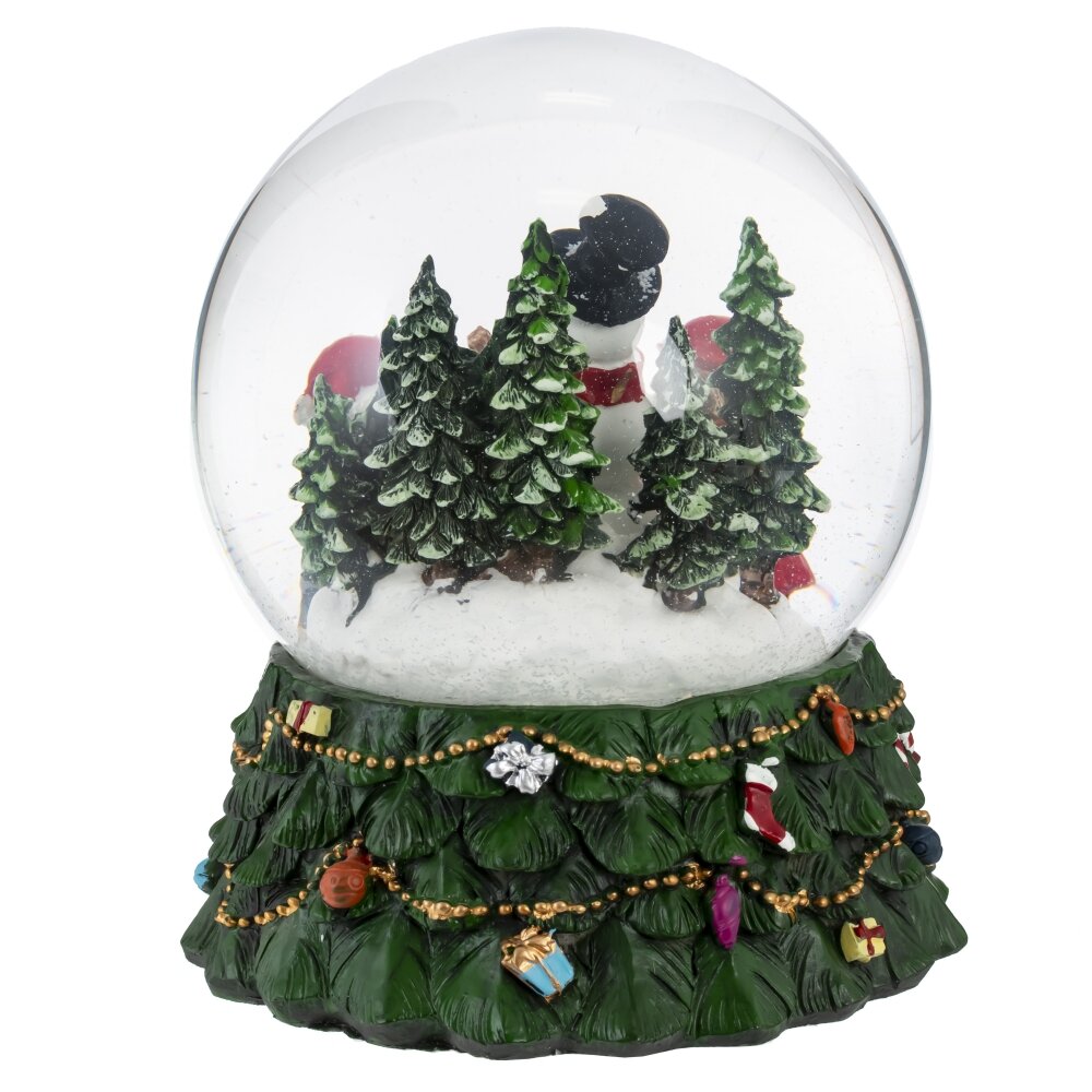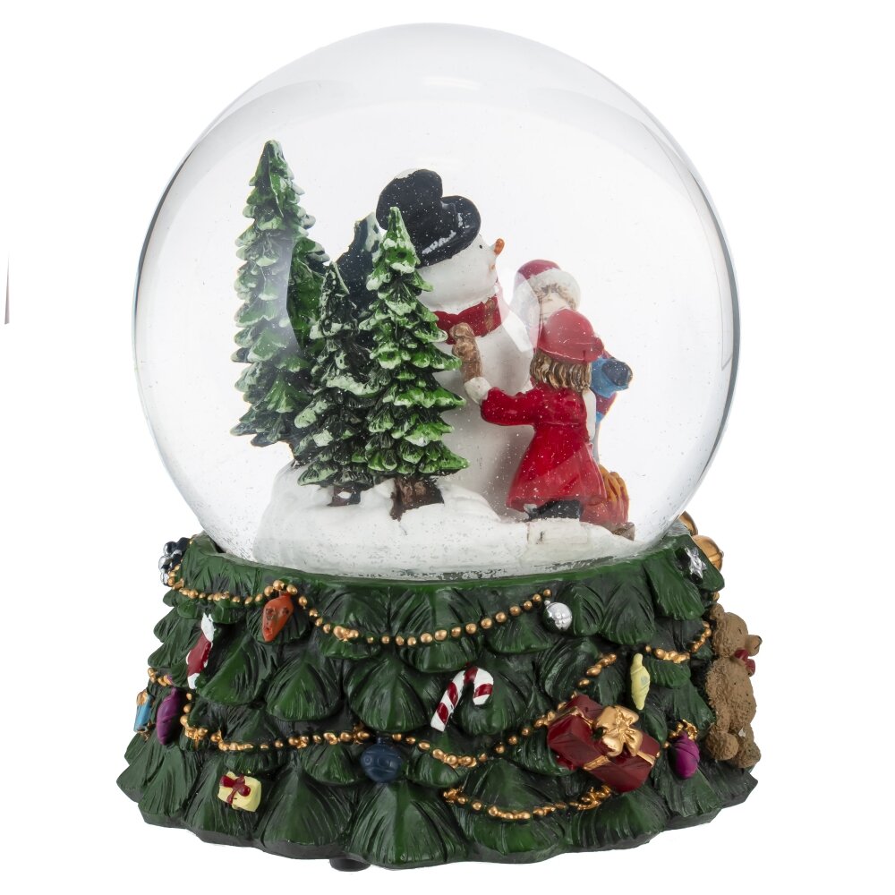 Декоративная новогодняя фигурка "Снеговик" в стеклянном шаре - это волшебное сочетание красоты и праздничного настроения! Подставка из полимерного материала в виде новогодней ели добавляет оригинальности этому сувениру. Внутри стеклянного шара диаметром 14 см расположена сцена с детьми, слепившего большого снеговика. Рычаг на дне подставки запускает цветную подсветку, вьюгу из мелких белых хлопьев и восемь новогодних мелодий, создавая атмосферу праздника. Сувенир имеет два режима работы: с музыкой и без. Для работы необходимы три батарейки типа AAA, которые не входят в комплект. Погрузитесь в волшебство праздника с этим уникальным сувениром!