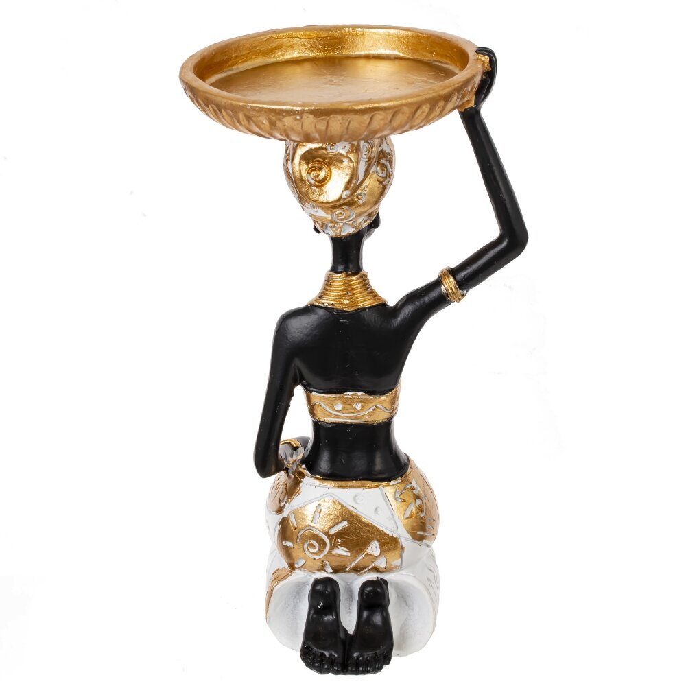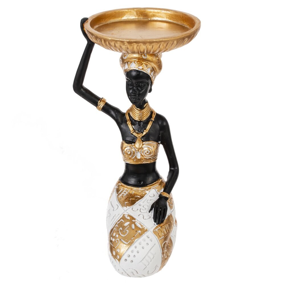 Декоративная фигурка "Африканка" выполнена из полимерных материалов и представляет собой изящную композицию с элементами этнического стиля. Утончённый дизайн, гармоничное сочетание чёрного, золотого и белого цветов, а также изысканные детали создают неповторимый облик этого украшения. Женщина в традиционном наряде держит поднос, который можно использовать как небольшую подставку. Фигурка станет стильным акцентом в интерьере, привнесёт атмосферу загадочности и экзотики, отлично подойдёт для гостиной, спальни или кабинета. Это прекрасный выбор для ценителей восточной и африканской культуры, а также отличный подарок для любителей оригинального декора.