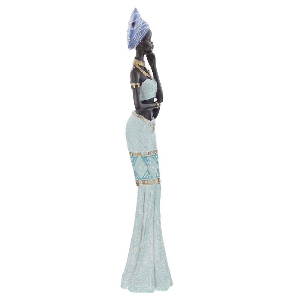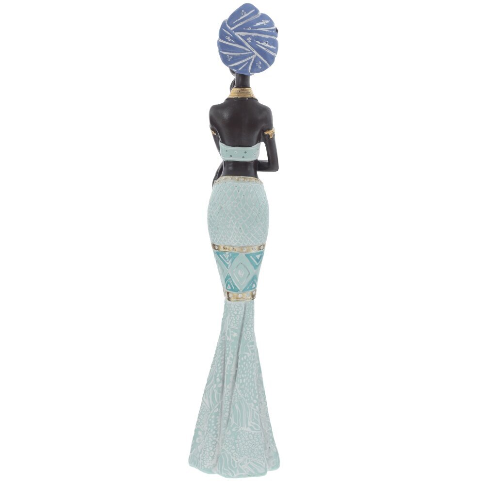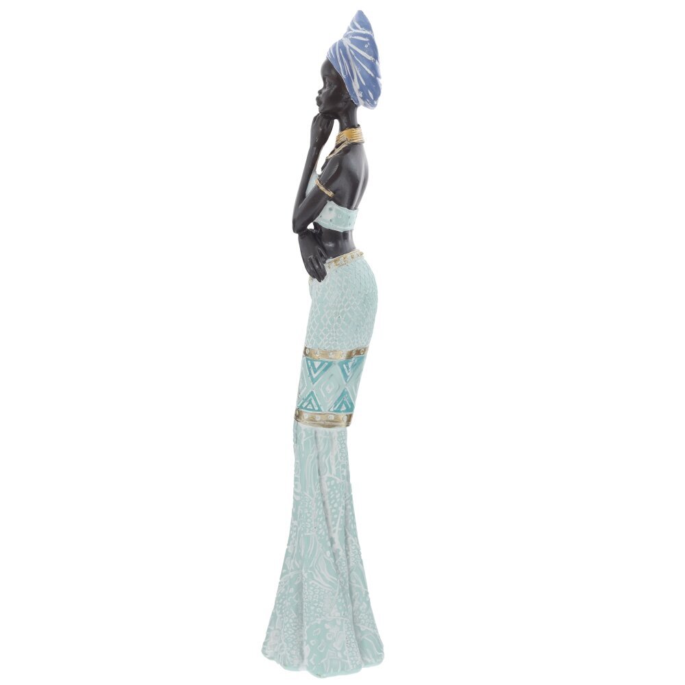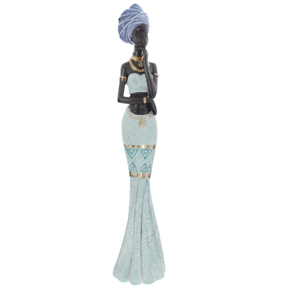Декоративная фигурка «Африканка» – изящный акцент для интерьера в этническом или современном стиле. Стройная девушка в длинном облегающем платье нежно?бирюзового оттенка украшена тонким орнаментом и изящным поясом. Голова фигуры покрыта эффектным тюрбаном глубокого синего цвета, образ дополняют изысканные золотистые украшения на шее, руках и поясе. Продуманная поза и проработанные детали придают изделию ощущение утончённости и благородства. Фигурка выполнена из прочных полимерных материалов, устойчива к выцветанию и легко очищается от пыли. Подойдёт для размещения на полке, каминной полке, туалетном столике или в офисе, станет оригинальным подарком ценителям необычного декора и этнических мотивов.