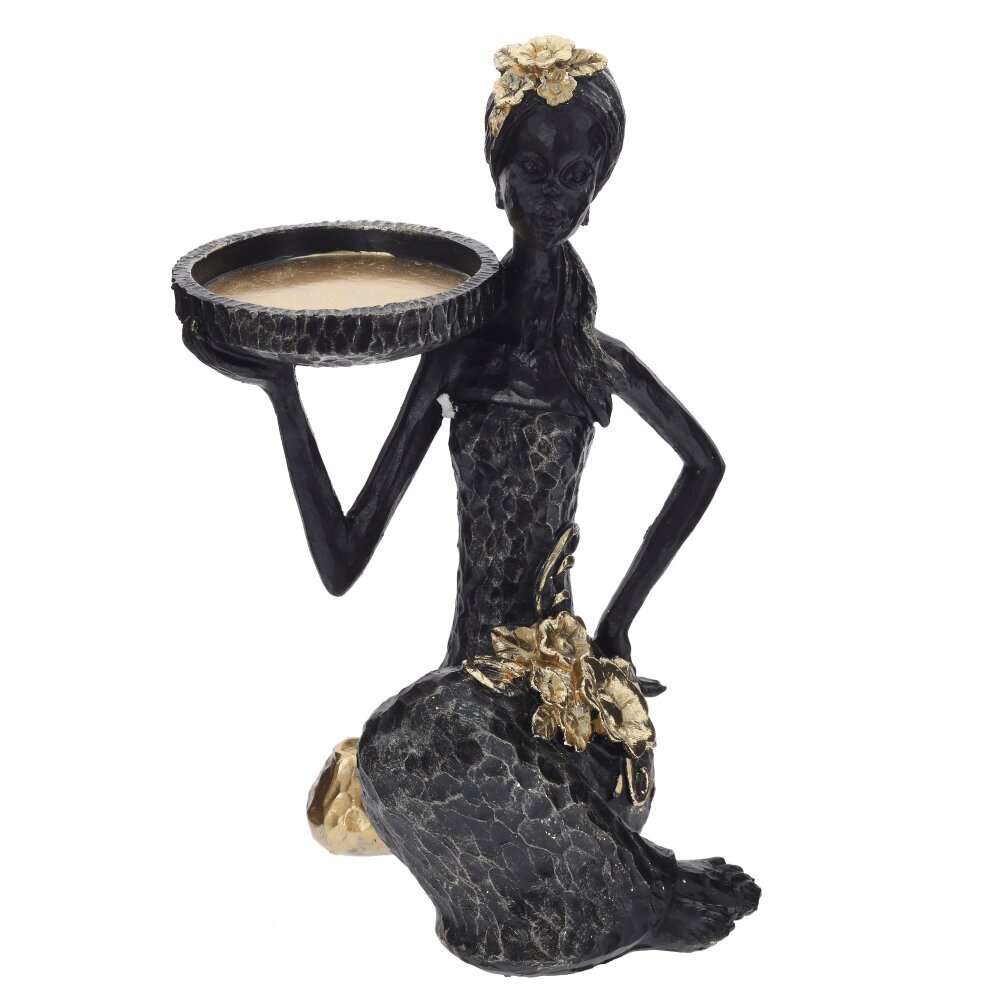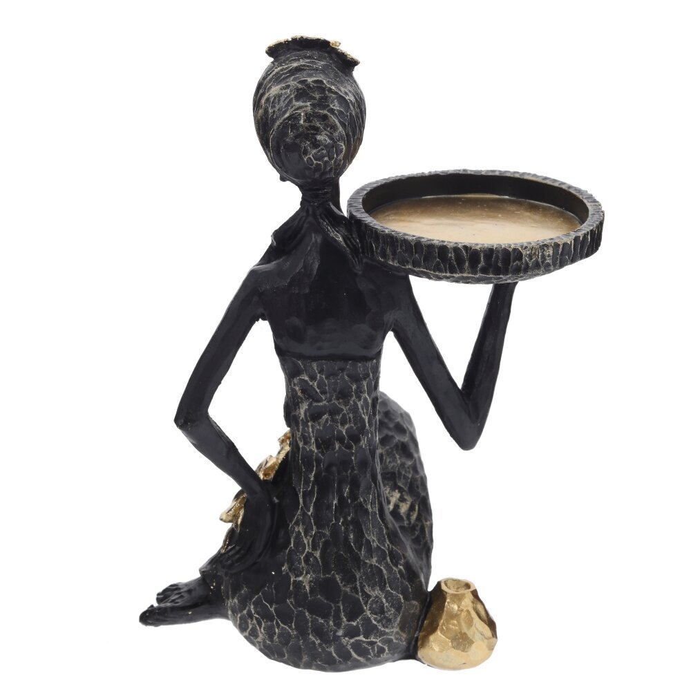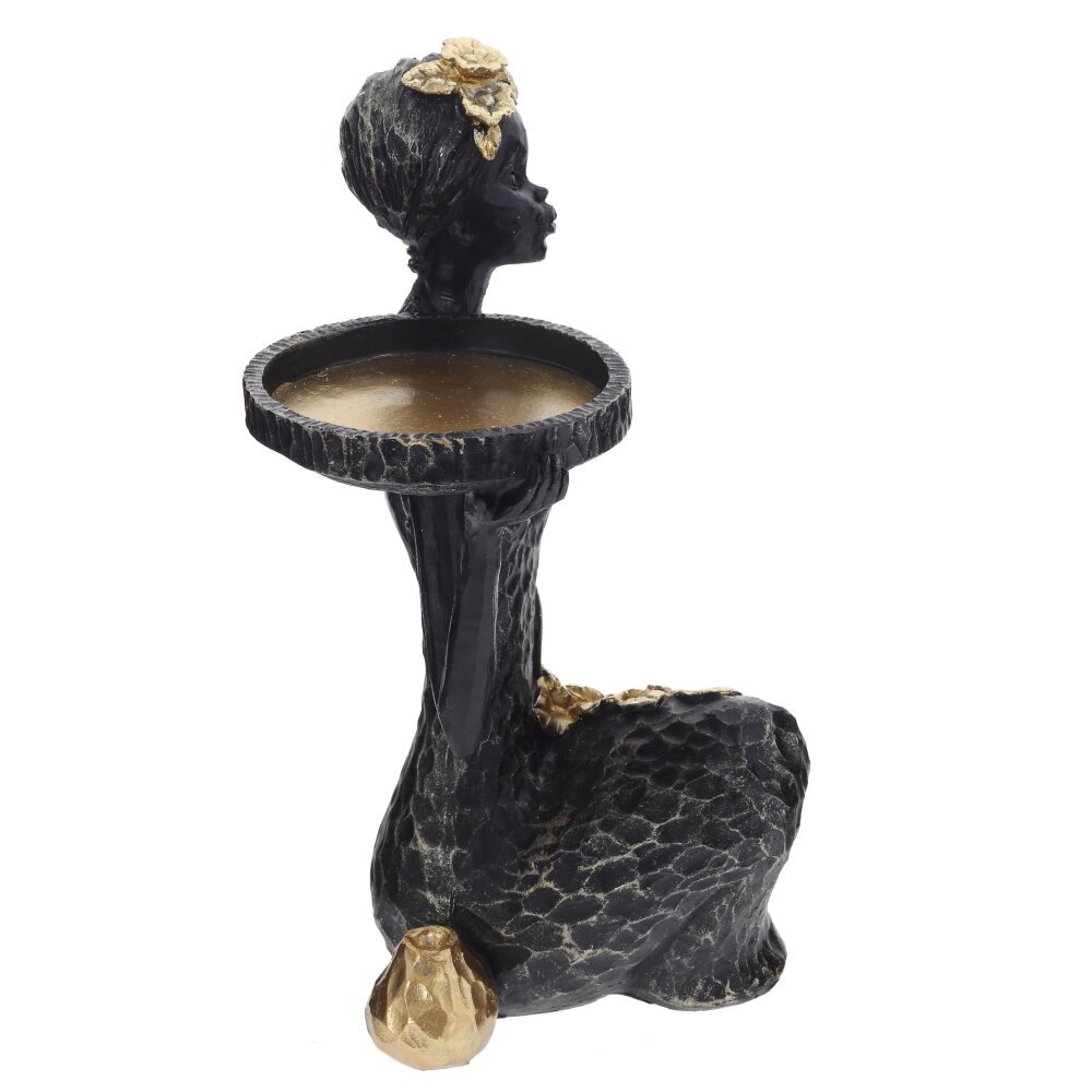 Декоративная фигурка «Африканка» с подставкой для мелочей – изящный акцент для вашего интерьера. Скульптурное изображение стройной девушки в этническом стиле выполнено из прочных полимерных материалов, украшено золотистыми элементами и фактурной поверхностью. Плоская круглая площадка на поднятой руке служит удобной подставкой для украшений, ключей, ароматических свечей или сладостей. Фигурка гармонично смотрится на туалетном столике, комоде или в прихожей, привнося атмосферу уюта и лёгкой экзотики. Отличный вариант стильного подарка и красивый органайзер для небольших предметов.