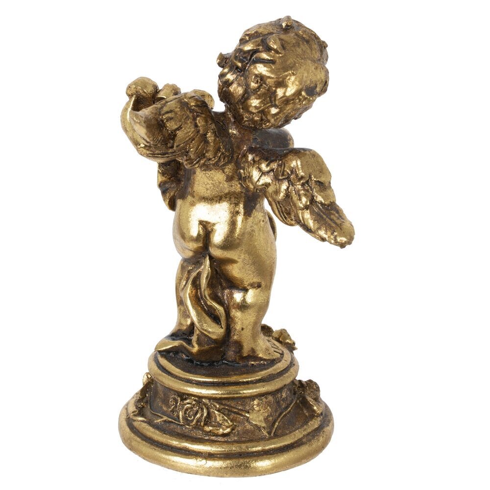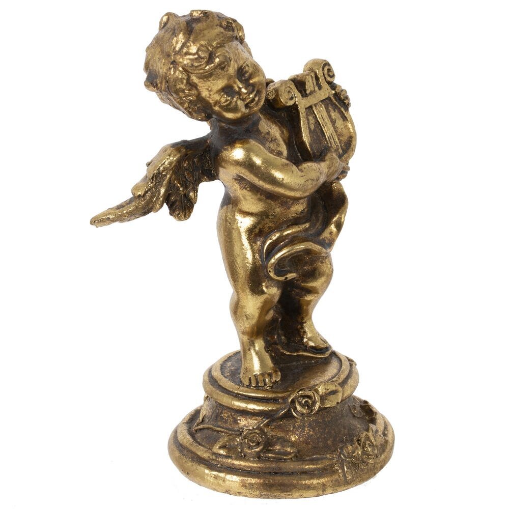 Декоративная фигурка «Ангел» – изящный акцент для интерьера в классическом стиле. Милый крылатый ангелочек с лирой в руках выполнен из прочных полимерных материалов и покрыт благородным золотистым цветом с легким эффектом старины. Детализированная проработка складок, локонов и декоративного постамента делает статуэтку выразительной и нарядной. Идеально подойдет для гостиной, спальни или каминной полки, создавая атмосферу уюта и гармонии. Может стать трогательным подарком к любому празднику или знаком внимания близкому человеку.