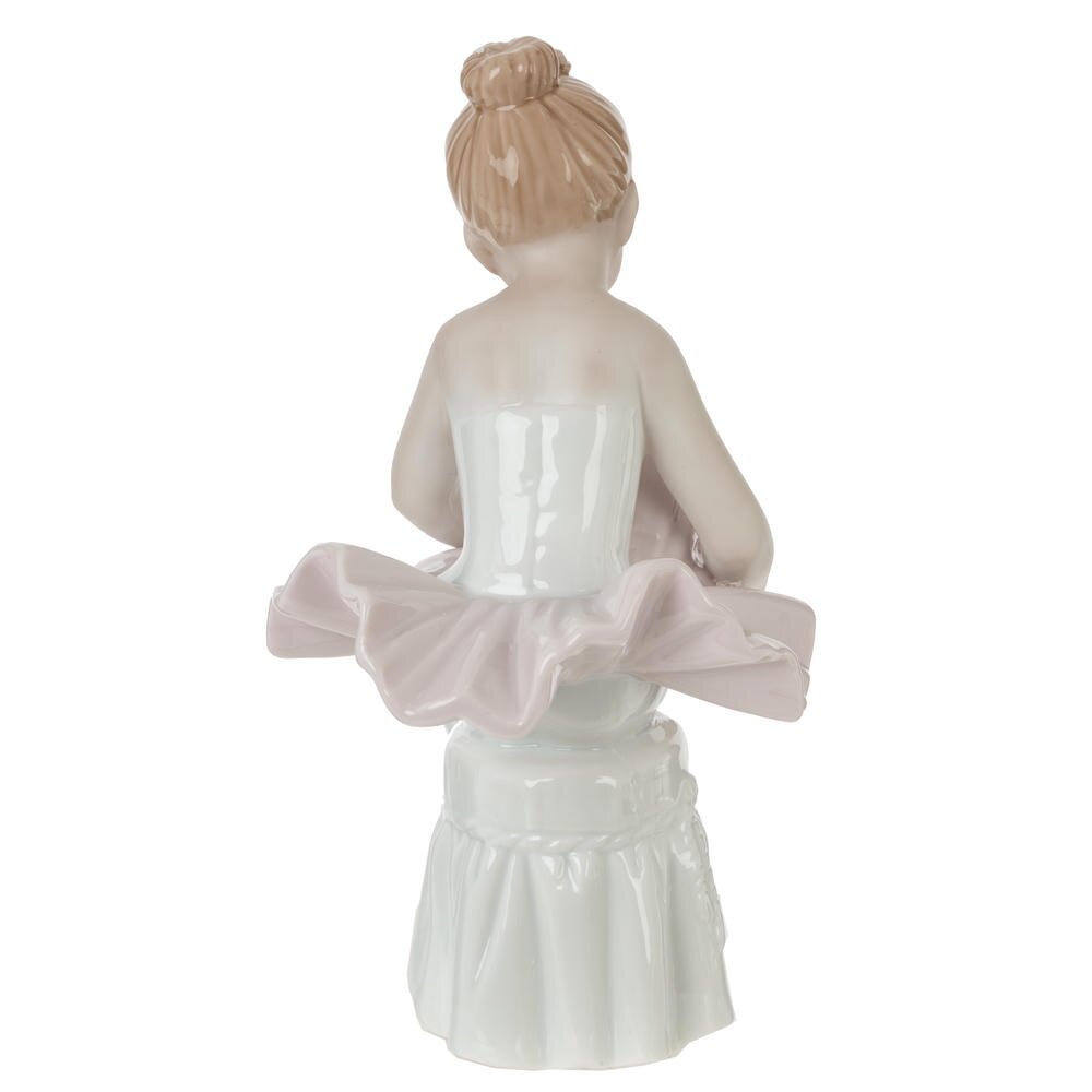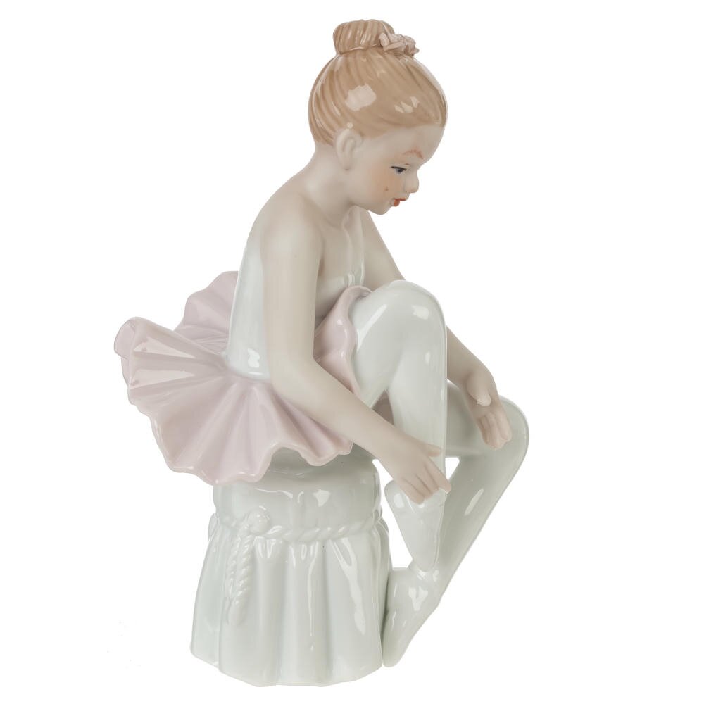 Декоративная фигурка «Балерина» из фарфора станет изящным акцентом в любом интерьере. Юная танцовщица изображена в момент подготовки к выступлению: сидя на пуфике, она аккуратно поправляет пуанты. Нежные пастельные тона, мягкий блеск глазурованной поверхности и тщательно прорисованные детали – складки пачки, изящные линии рук и ног, аккуратная причёска – придают изделию особое очарование и утончённость. Фигурка гармонично впишется в спальню, гостиную или детскую комнату, подчеркнёт романтический, классический или современный стиль. Подойдёт в качестве коллекционного экземпляра, а также как трогательный и запоминающийся подарок ценителям балета и красивых интерьерных украшений.