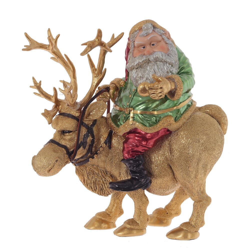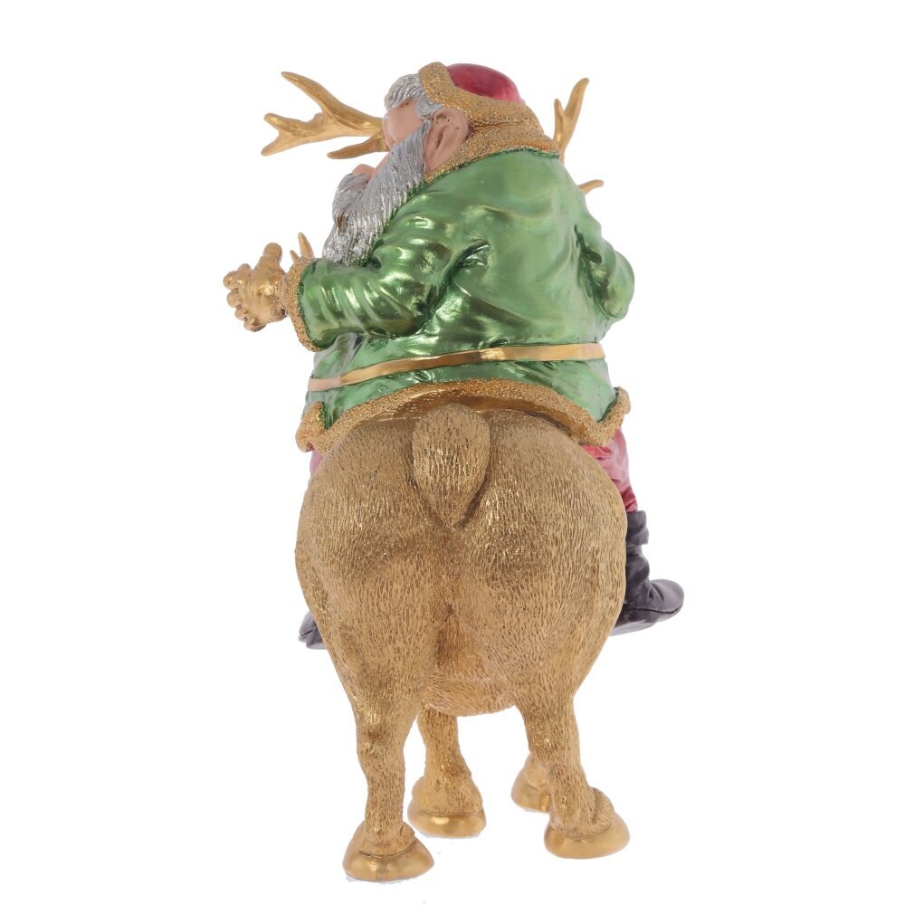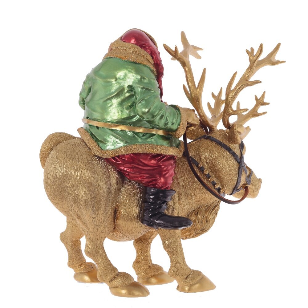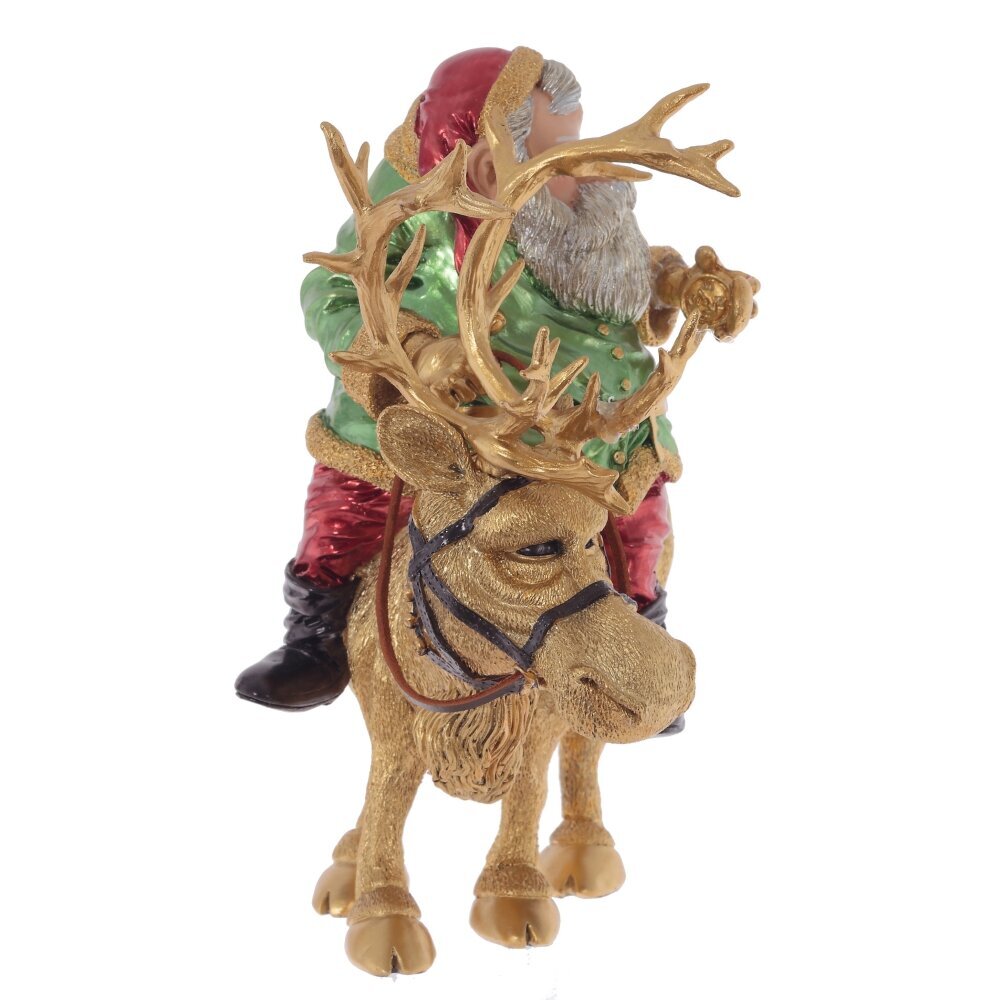 Изготовленная из полистоуна с любовью к деталям, фигурка "Дед Мороз на олене" воплощает дух Рождественской ночи. Эта забавная композиция изображает упитанного Санту, который, несмотря на свою внушительную тяжесть, с грацией уселся на спину свего старого верного друга - оленя.