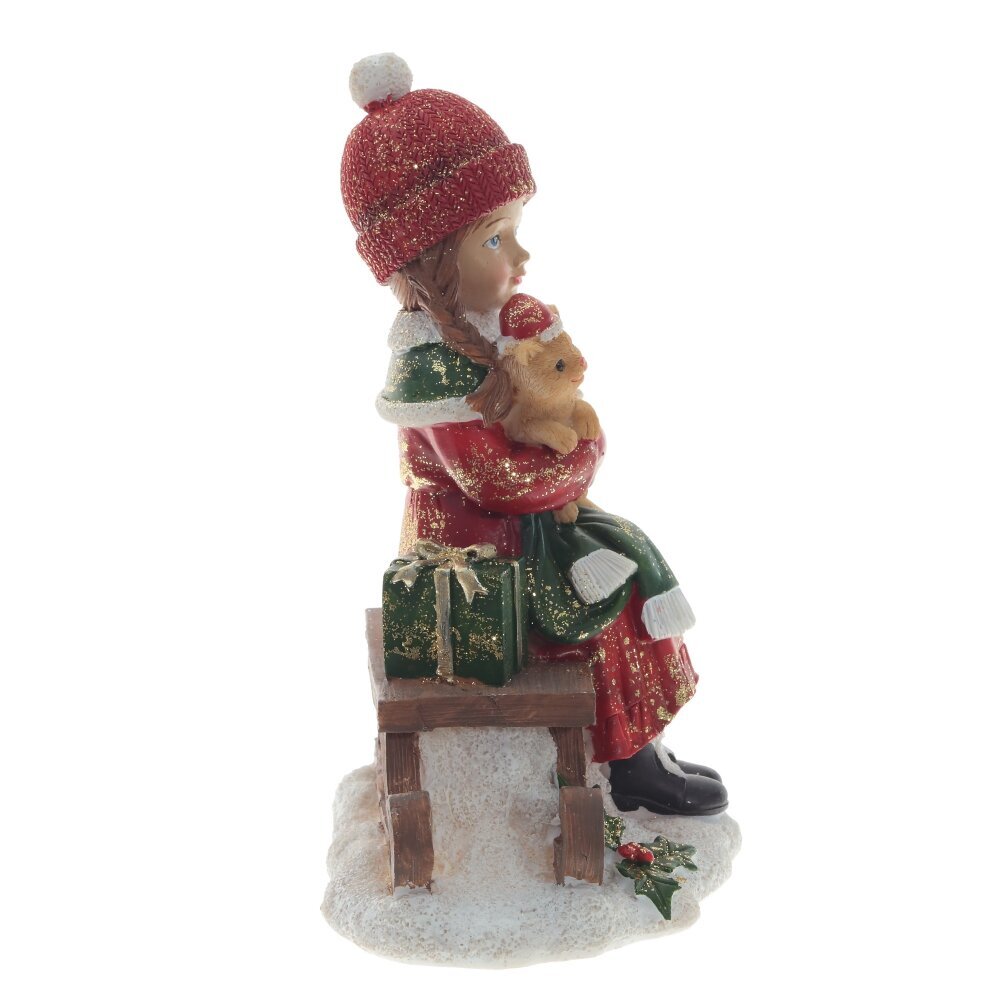 Замечательная фигурка Девочки в красной шубке для новогоднего и рождественского оформления. Может уютно расположиться на камоде, у елки вместе с новогодними подарками или украсить новогодний стол.
