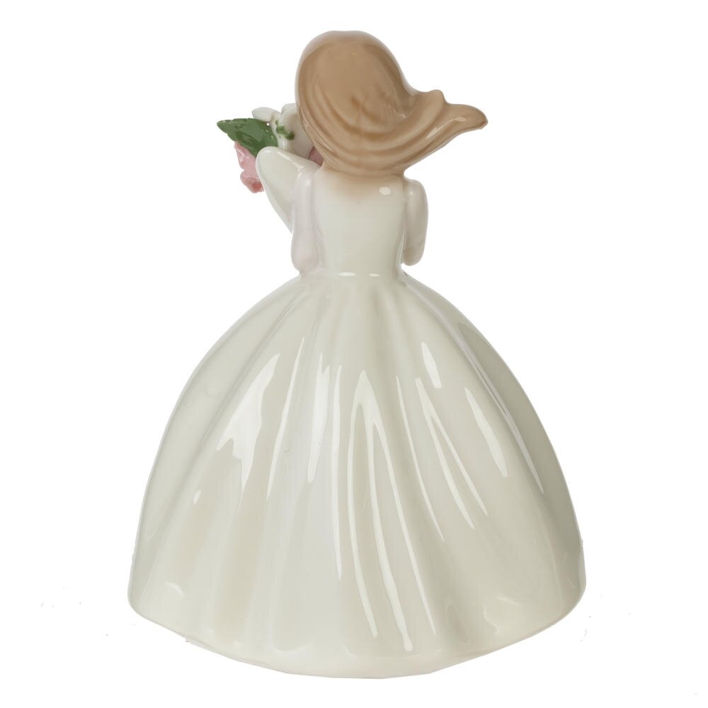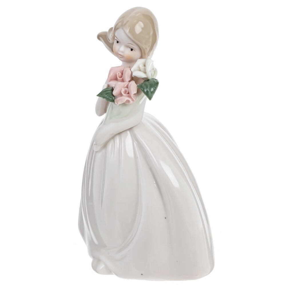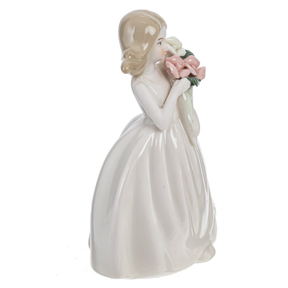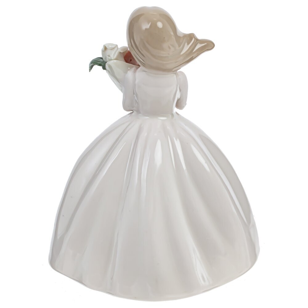 Фигурка представляет собой девочку в белом длинном платье, с букетом цветов в руке. Изделие выполнено из фарфора в нежных пастельных тонах и имеет множество деталей, которые придают ей красоту и элегантность.