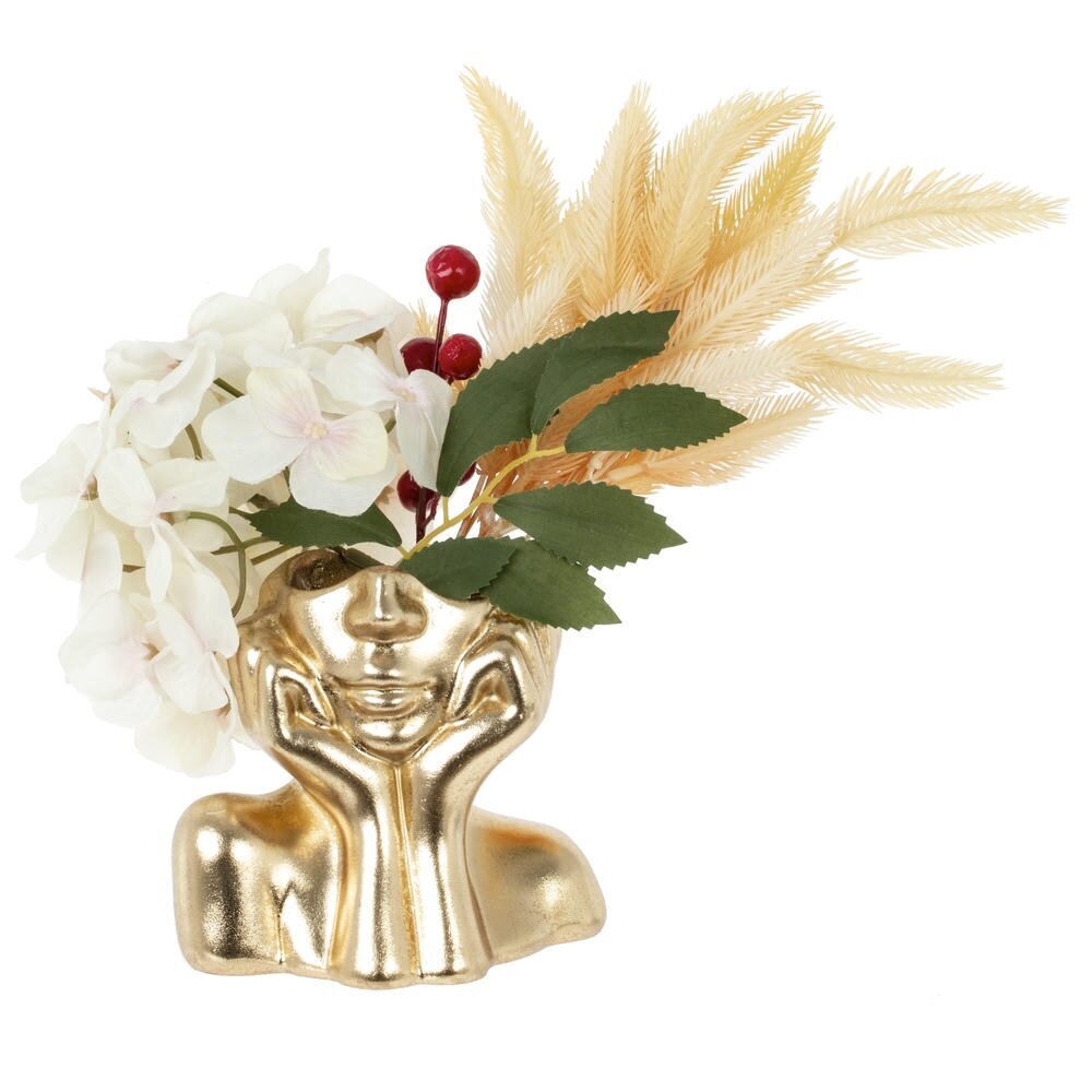 Эффектная декоративная фигурка с емкостью для мелочей. Выполнена из прочных полимерных материалов с благородным золотистым покрытием. Образ стилизованного лица, опирающегося на ладони, создаёт настроение спокойствия и лёгкой иронии. В верхней части предусмотрено углубление, куда удобно складывать кольца, серьги, монеты, скрепки или ключи. Компактный аксессуар украсит рабочий стол, туалетный столик или полку в прихожей, добавив интерьеру акцент арт-объекта. Лёгкая, устойчивая и простая в уходе: достаточно протирать сухой или чуть влажной салфеткой. Отличная идея для подарка и практичный организатор повседневных мелочей.